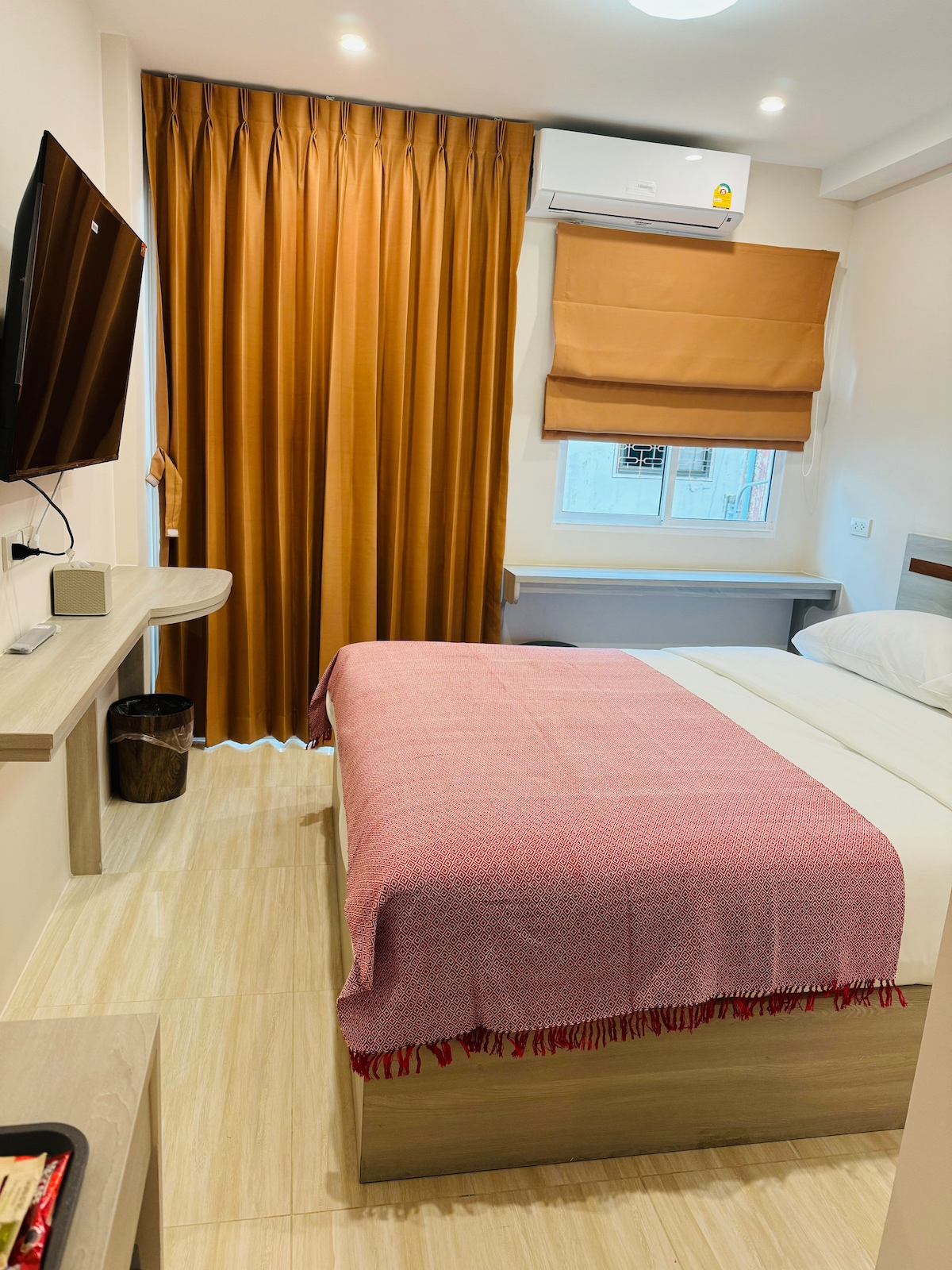 The Superior Double Room fits 2 guests with a queen-size bed and a 5-star hotel–quality mattress. Enjoy modern, minimalist design with air conditioning, flat-screen TV, refrigerator, writing desk, and free high-speed Wi-Fi. Located in a quiet local area, just a 15-minute walk from MBK and Siam Center — perfect for travelers seeking comfort, value, and convenience in central Bangkok.