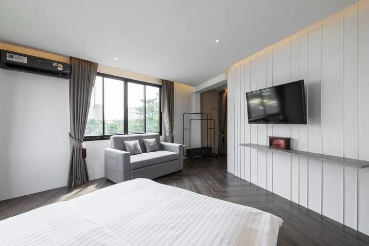 欢迎入住我们位于曼谷吞武里区的独栋阳光房! ✨ 距离ICONSIAM仅约8分钟车程 ✨ 房间超大,配有餐桌、办公桌,适合情侣或远程工作者 ✨ 天台可休闲看日落,生活氛围温馨安静 ✨ 步行可达7-11和本地市场,美食便利 ✨ 距离最近的BTS站约2公里,建议搭乘出租车或摩托车更方便 🛏️【完整房源描述】 欢迎来到我们独栋小楼中的一楼大房间,环境安静舒适,空间充足,非常适合短租或中长期居住。 🛌 房间配备: • 宽敞双人床、干净床品 • 餐桌、办公区,适合吃饭与远程办公 • 衣柜、储物架、私人浴室、热水淋浴 • 免费WiFi、毛巾、吹风机、洗浴用品 🌇 房源亮点: • 房间位于独栋房屋一楼,楼上设有共享天台,可晒太阳、看日落 • 距离ICONSIAM约8分钟车程(可搭Grab或摩托车) • 步行1分钟即达7-11与小市场,吃喝采买非常便利 • 距离最近的 BTS Wongwian Yai 或 Krung Thonburi 站约2公里,建议搭车前往,5分钟左右车程 🧘 非常适合喜欢慢节奏旅行、想体验在地生活,又不想住在过于喧闹市区的朋友。