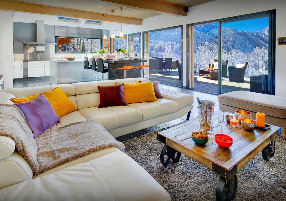 现代舒适的W 12人度假木屋- 白朗峰景观