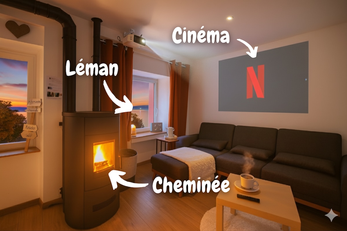 The Rooftop, an apartment at Villa du Lac with its suspended terrace, exceptional views of Lake Geneva, and shared private beach: right on the water! A modern and welcoming living space. Comfortable and bright sleeping areas. A shared games room for fun and socializing! A perfect place to recharge your batteries and share unforgettable moments in a unique natural setting! Video available on the internet