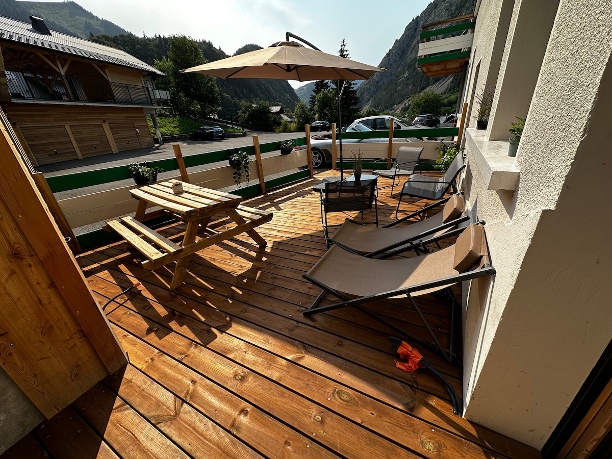 Apartment at garden level in a completely renovated ancient farm on the south hillside of Samoëns. Nice triplex style 1500 ft2 apartment with 5 bedrooms, 3 bathrooms, 3 WC, private parking, shared garden with terrace and barvecue, all comfy. Shared access to the Espace Bon-être : massage parlour, sauna, outside jacuzzi from 10h to 22h. Magnificent view on the surrounding mountains and Samoëns downhill. The chalet is about 4km from the lifts which lead to Samoëns 1600, beginning of the slopes.