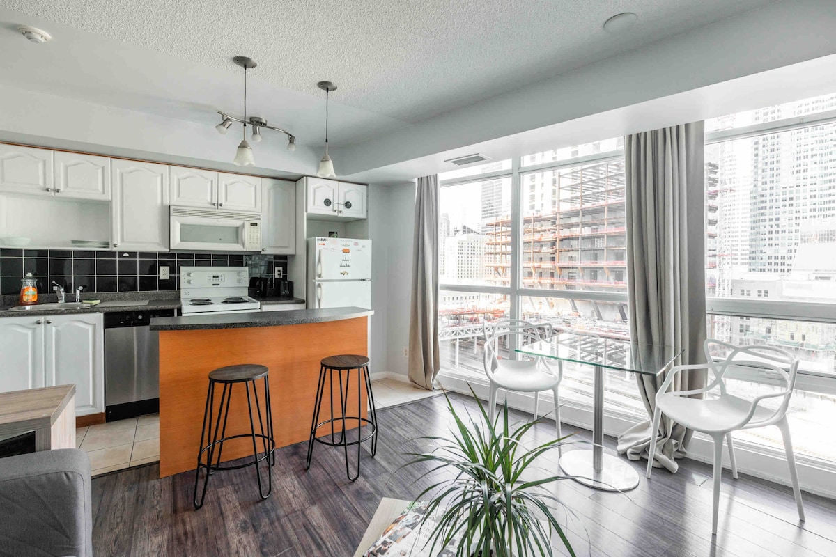 A newly-furnished condo located at the heart of Downtown Toronto guaranteed to maximize your stay with everything at close proximity. This condo has 10 ft ceilings and over 700 sq ft We provide High-speed WiFi, Cable TV, washing machine/dryer, and basic amenities. Explore Toronto right at your doorstep: - Metro Toronto Convention Centre 30m - CN tower/Rogers Centre 210m - Union Station 500m - Harbourfront Centre 700m - Air Canada Centre 900m - TIFF Bell Lightbox