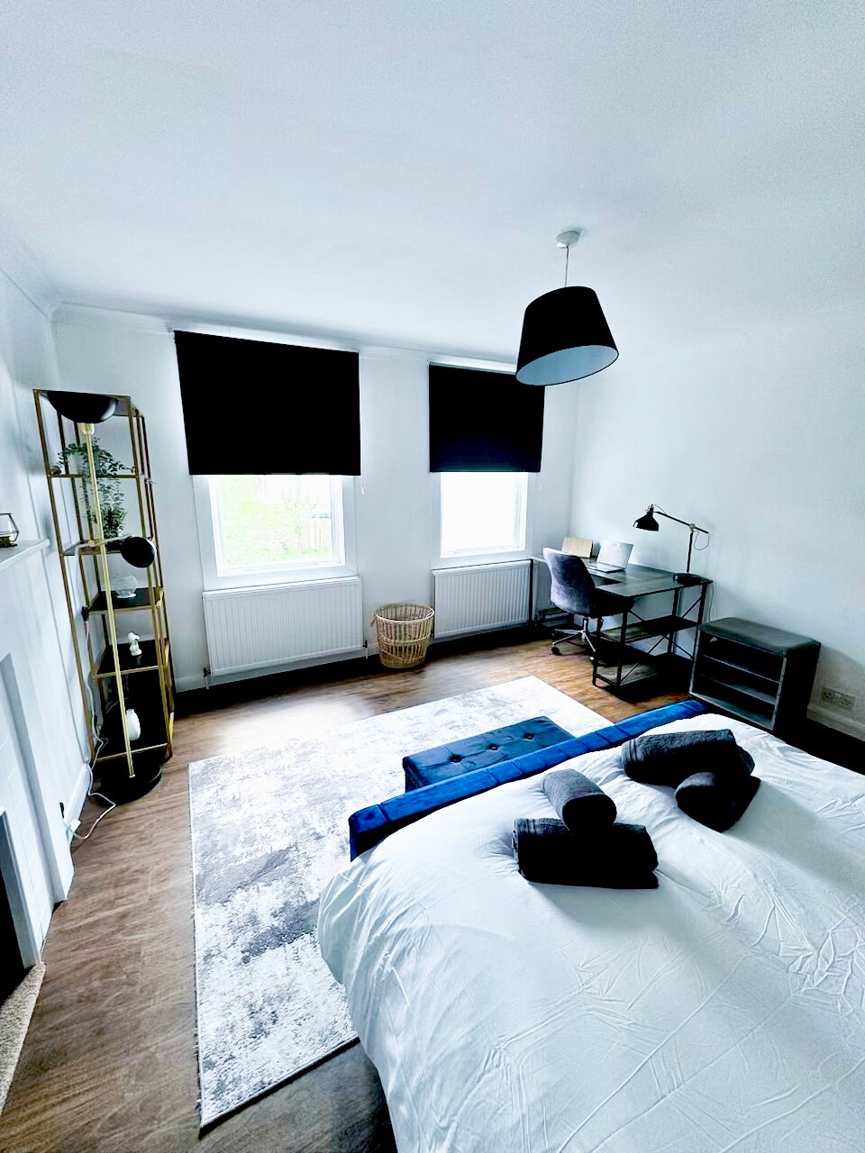 FULLY SELF-CONTAINED studio apartment With NO SHARED SPACES. Back on the market after a long stay guest. Situated on the second floor of a grand Victorian Mansion, this studio for 2 persons has recently been totally refurbished. Stunning contemporary decoration, styling and suitable for any length of stay. Fully equipped kitchen, power shower and our on site laundry are other features as well as excellent transport links directly into central London.