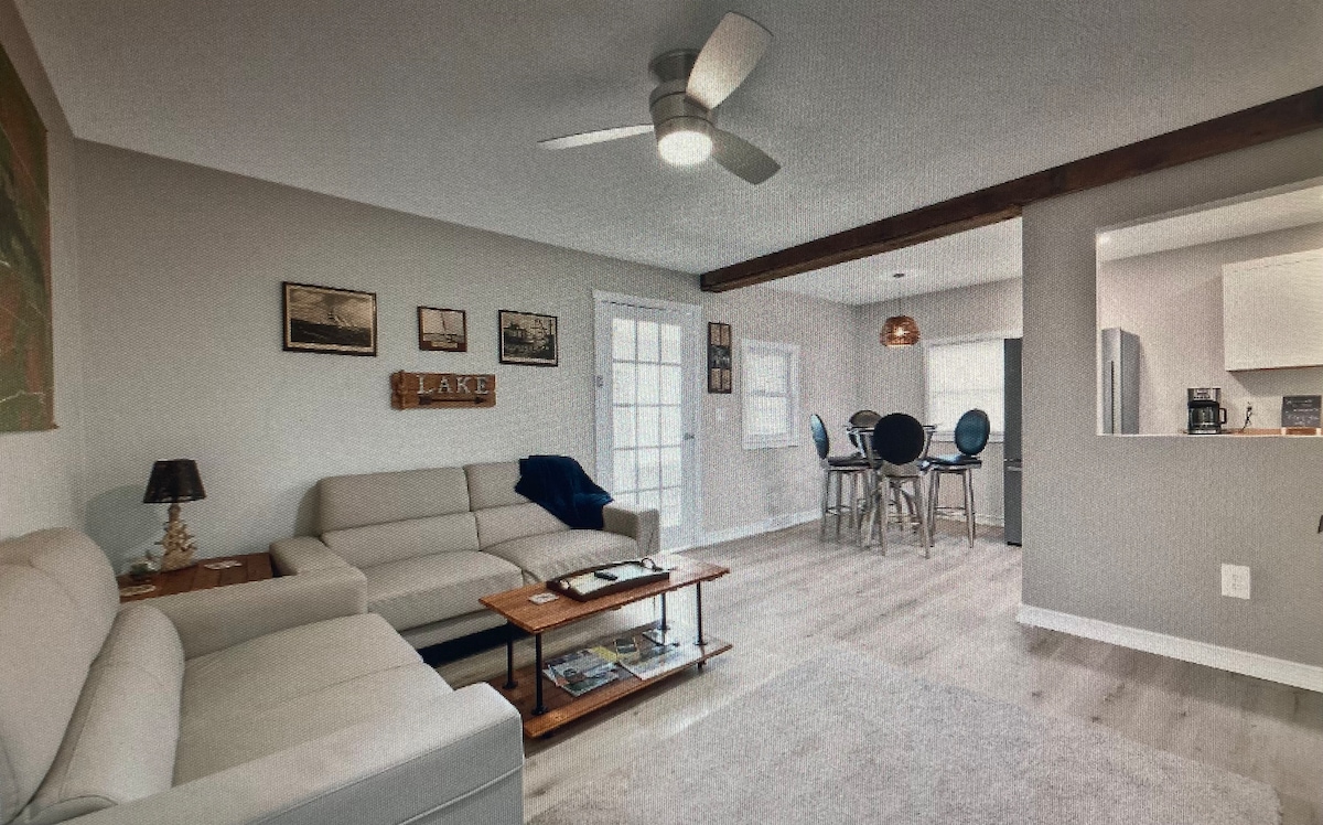Newly remodeled home just a short walk to the Lake, Bars & Restaurants! 2 bedrooms & 2.5 bathrooms with a cozy nautical design. Fully stocked kitchen and spacious living room are perfect for vacationing with family! Additional amenities included for our guests are: 3 Bikes, Yard Games, Firepit, Propane Grill & Board Games We can accommodate a MAX of 3 Cars and no street parking available. All Short-Term Rentals in the Village of Buckeye Lake are governed under Ordinances #2022-36/#2023-27