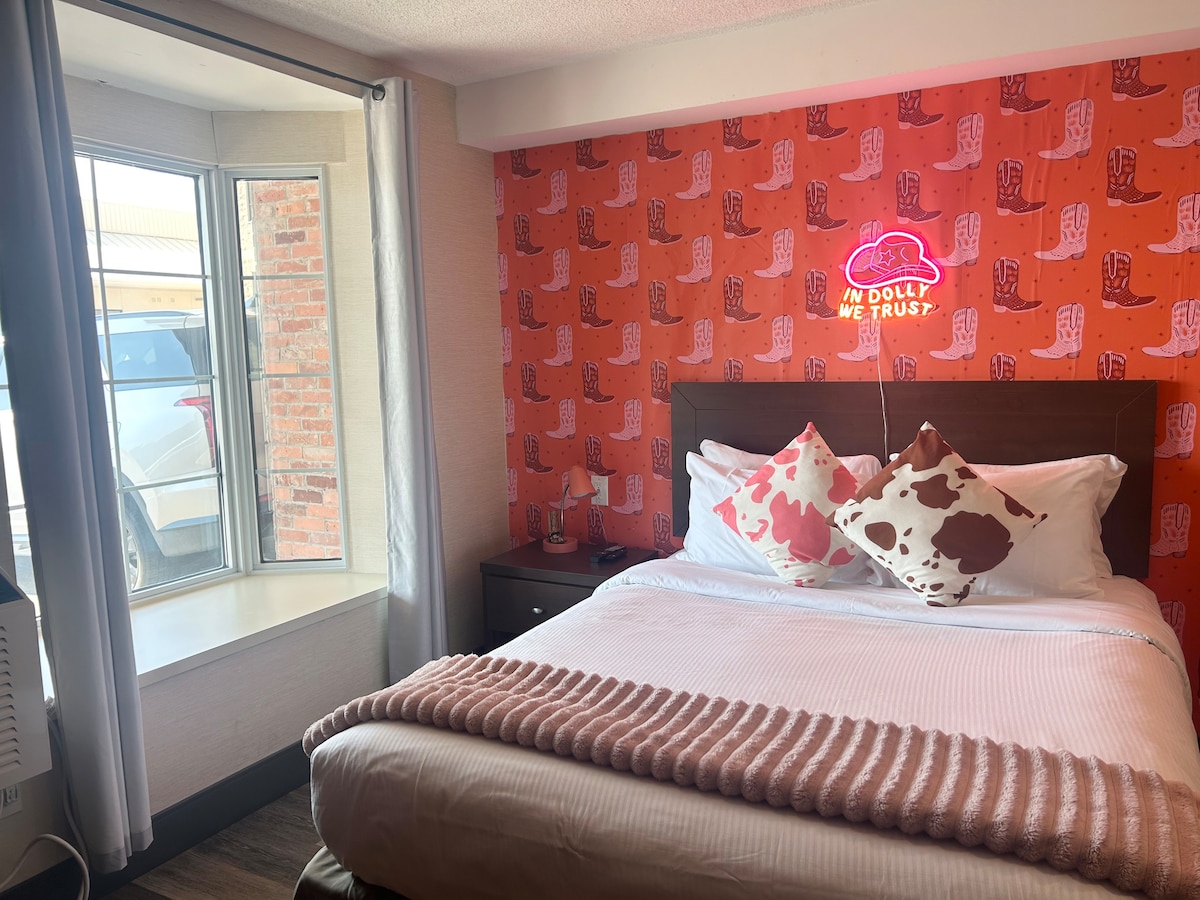 Experience a unique and inviting Dolly Parton Guest Suite that stands out with its cozy and eclectic design. Located next to the Canada One Outlet Mall, this residence is just a short nine-minute drive from the attractions of Niagara Falls, Casino Niagara, and Clifton Hill. Furthermore, it is steps away from a variety of shopping and dining experiences. The property offers free on-site parking, and the Niagara Transit service conveniently stops at the front of the building for easy access