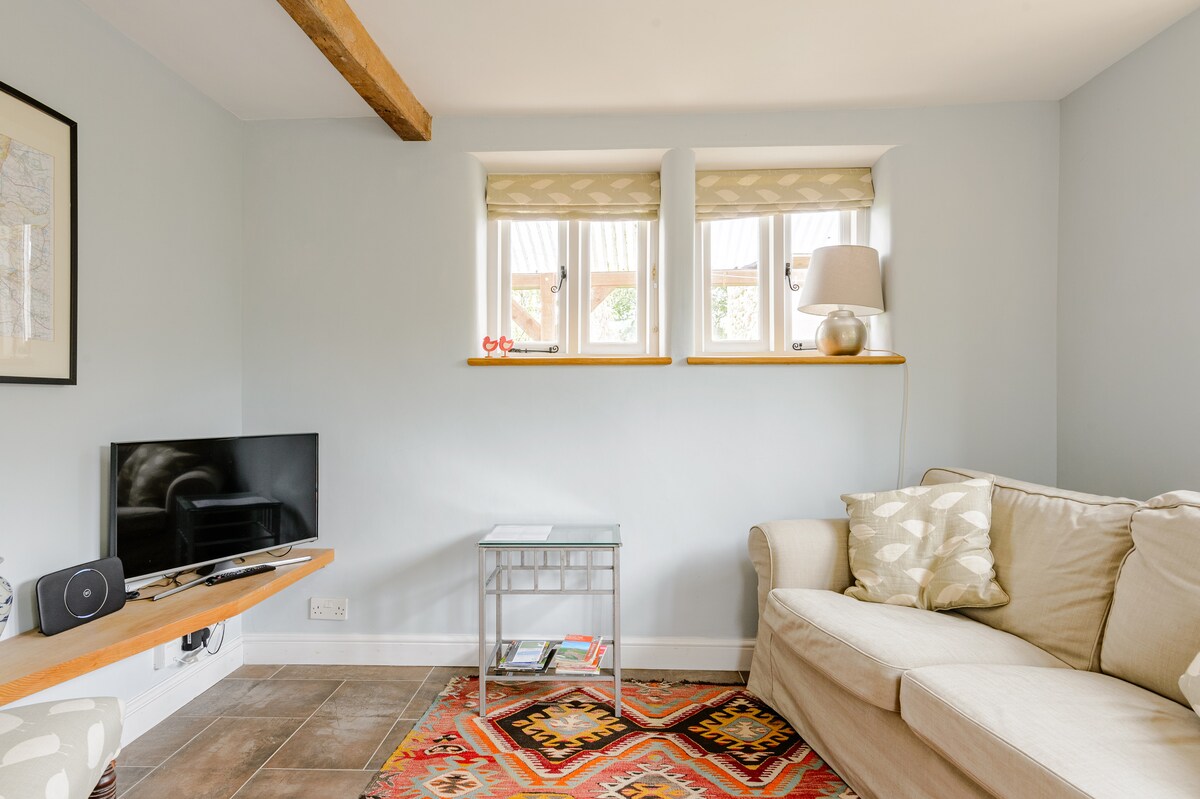 Converted coach house, ancient cruck beams and woodburner. Country village near Ross on Wye. Restful and quiet, ideal for couple. Open plan with mezzanine bedroom. Two loos, shower. Long views. Great pubs nearby. Own patio and fire basket in orchard. 3 friendly dogs, 2 horses. On May Hill with many walking opportunities . Seven counties visible from the top. On edge of Forest of Dean with excellent walking/cycling routes, and canoeing on the River Wye just 20 mins away. Cheltenham races 40 mins.