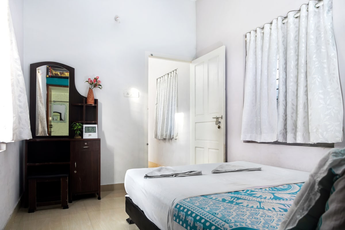 Amandaville is a bungalow with 4 private rooms located in prestigious Panampally Nagar (Cochin), close to businesses, restaurants, hospitals and attractions. You’ll love Amandaville's tastefully furnished AC private rooms in the heart of Kochi with 4-star amenities and a support staff to pamper you. Nestled in peaceful neighborhood, each private room offers spacious bathrooms, comfortable beds and common large modern kitchen with appliances, dining area, Terrace, Free Wifi and other amenities.