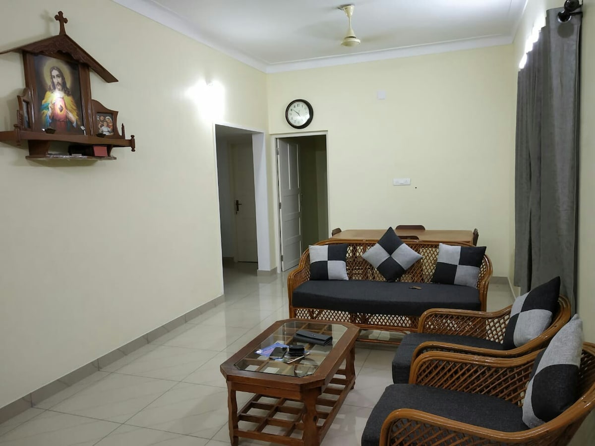 Amandaville is a bungalow with 4 private rooms located in prestigious Panampally Nagar (Cochin), close to businesses, restaurants, hospitals and attractions. You’ll love Amandaville's tastefully furnished AC private rooms in the heart of Kochi with 4-star amenities and a support staff to pamper you. Nestled in peaceful neighborhood, each private room offers spacious bathrooms, comfortable beds and common large modern kitchen with appliances, dining area, Terrace, Free Wifi and other amenities.