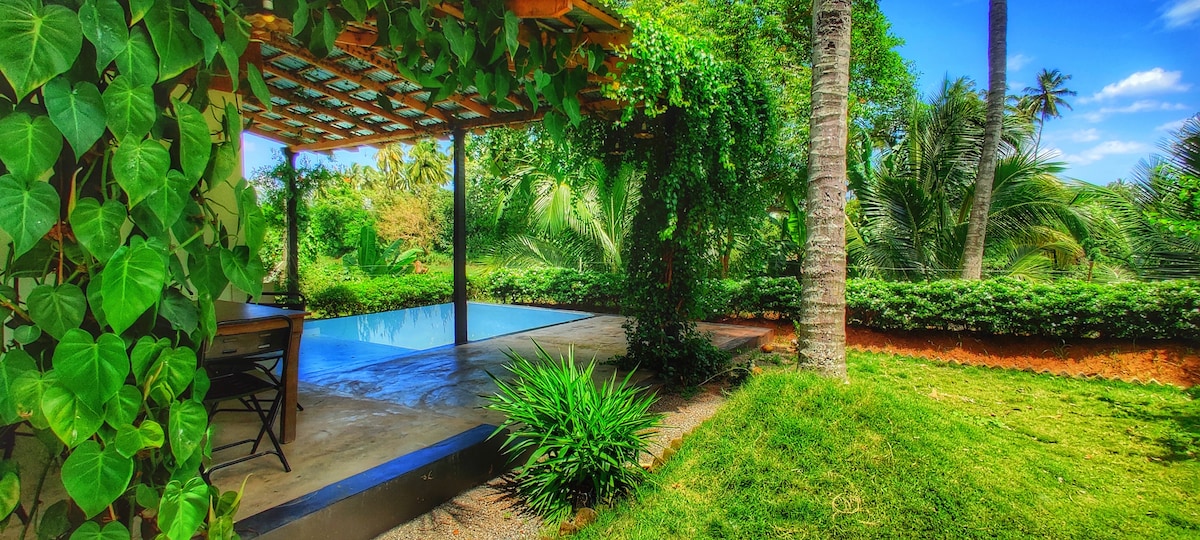 WABI Retreat (farm stay) located near Pollachi - in kakakothi parai plantations on the bank of Uppar River. We offer 3 private plunge pool cottages with private sit out and lawn. We serve traditions local veg and non veg food. The cottages are nestled among the coconut trees and overlook the perennial river.stay with us, just sit back relax and unwind,walk through the farm,watch the birds & live local.