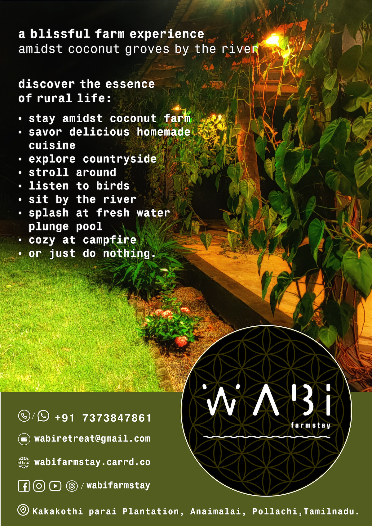 T House Pannadikadu is a well-kept secret nestled among the verdant Western Ghats. The farm is located at Chemmanampathy—a border village between Kerala and Tamil Nadu—near Pollachi, in the valley of the Parambikulam and Nelliyampathy hills. Experience life beneath the Western Ghats like never before with our farmhouse stay. Reconnect with nature and savour farm-fresh food. Whether you’re an adventure seeker, or simply seeking a peaceful getaway, our farmhouse promises a rejuvenating stay.