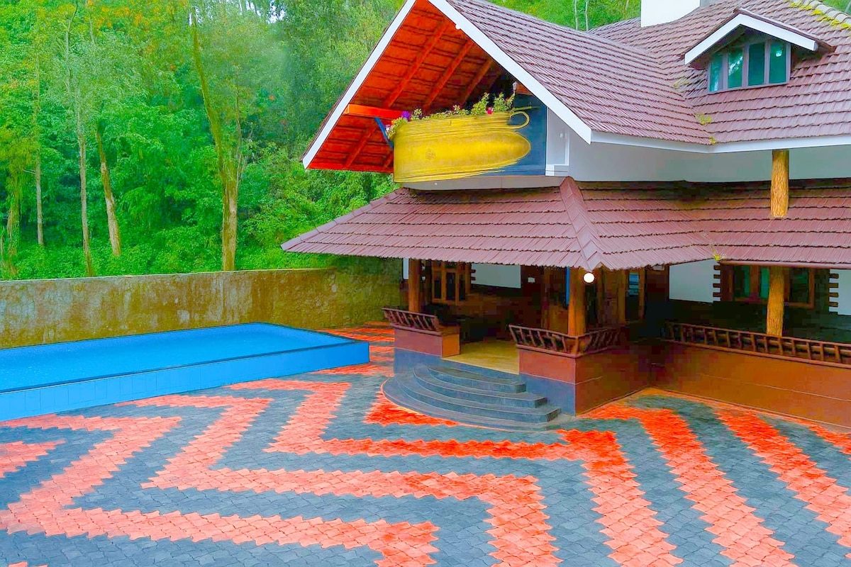 Relax with the whole family or friends at this peaceful place to stay. Pool available. Close to Athirapilly water falls. Homely food available. Walkable distance to river. Neat and clean rooms. Entire property is for bigger groups .For smaller groups we give particular rooms or area based on number of guests.
