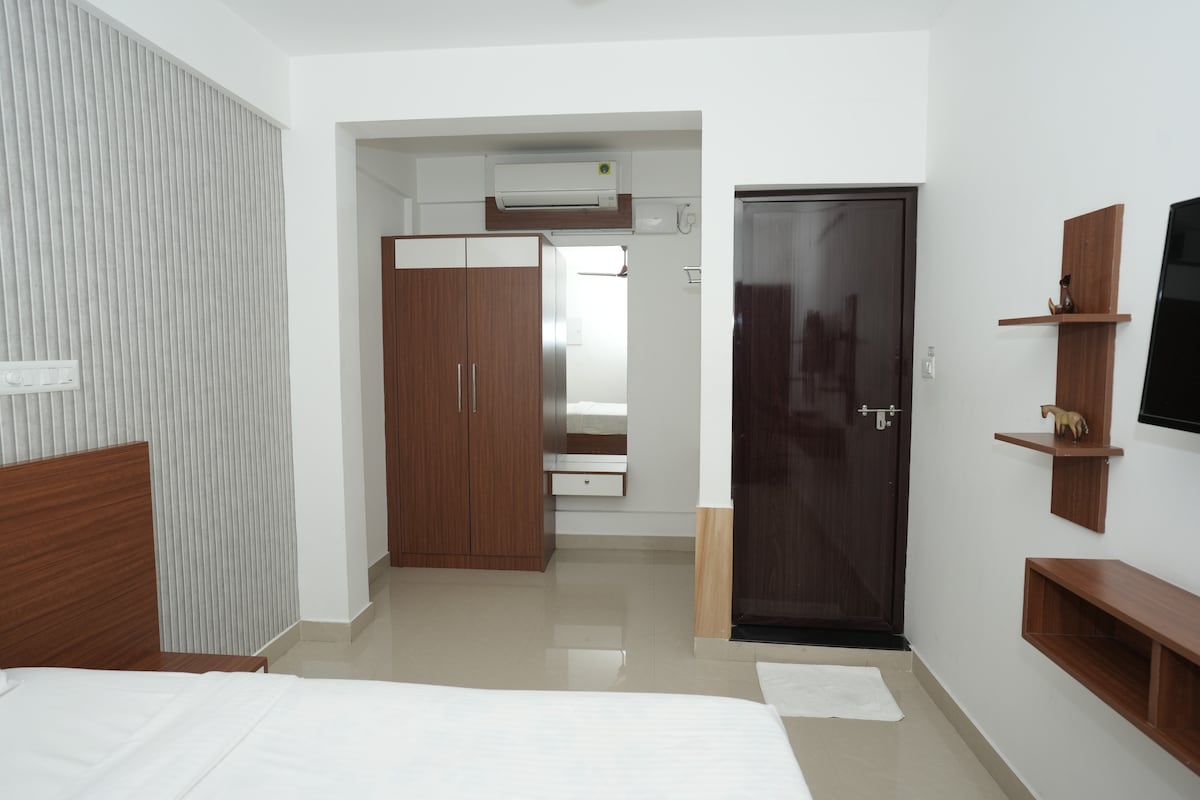 "Home, away from Home" Relax in this calm, stylish space just steps away from the divine serenity of Koodalmanikyam Temple. A perfect stay to relax and freshen up during your temple visit, Art and culture workshops etc. Enjoy the calm temple surroundings, easy access to temples, supermarkets, and hospitals, town centre, all within a few minutes’ reach. If you’re looking for a home that combines spiritual charm and modern lifestyle, this is the perfect choice. Welcome. 🙂 🙏