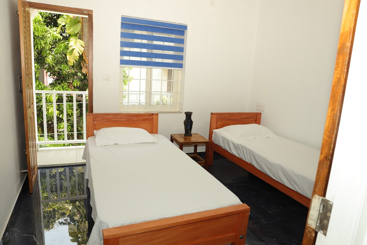 Located just 900m from Guruvayoor Temple and close to Mammiyoor Temple, this spacious 5BHK independent house is ideal for families or groups. Spread across two levels with separate kitchens and living rooms, it offers 5 AC bedrooms with attached bathrooms, high-speed Wi-Fi, inverter backup, CCTV (24/7), hot water, 2 TV, 2 Washing machines, 2 sofa cum beds and covered parking. Fully equipped for longer stays, it’s perfect for temple visits or family gatherings in a peaceful residential area.