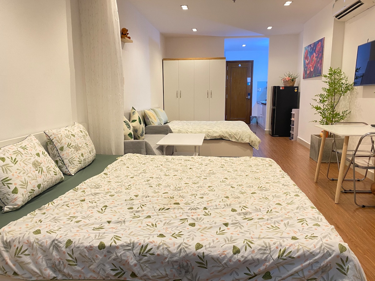 Beautifully designed Studio Apartment, convenient location, and direct elevator. Located right at the center of Thu Dau Mot city, 5' drive or 10' walk to the most commercial towers in town (Becamex Binh Duong), close to a number of dining, drinking and relaxing options, yet still quiet for a comfortable stay. ✯ Proper in-person check-in / checkout ✯ 24/7 online and offline support ✯ We have multiple units in house so feel free to ask if you need more occupancy