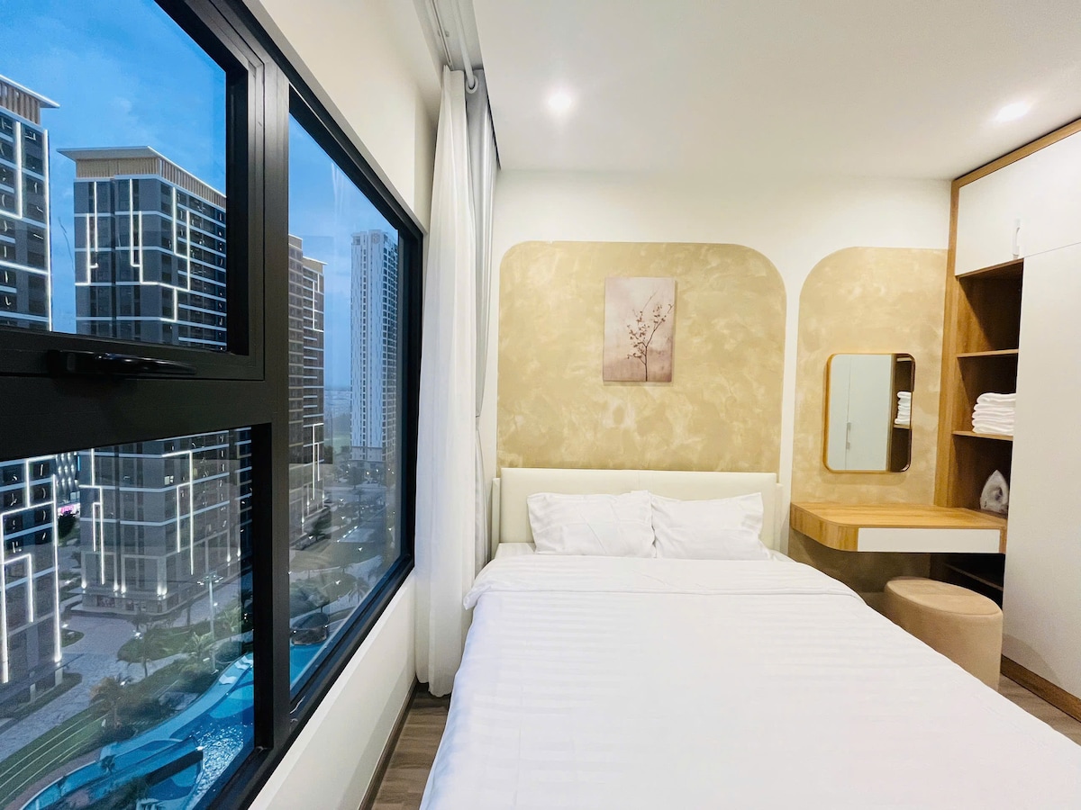 Premium 2BR Suite | Work & Relax 💼 Luxury living opposite VSIP 1 & near AEON Mall. Designed for productivity and comfort. 🏢 Features: Dedicated Workspace + Fast WiFi 🚀 Stunning Golf/City Views ⛳ Access to Infinity Pool, Gym & Sauna 🧖♂️ Modern kitchen & In-unit Washer. 24/7 Self Check-in for total privacy. We support temporary residence registration. The perfect base for your business trip. Reserve now!