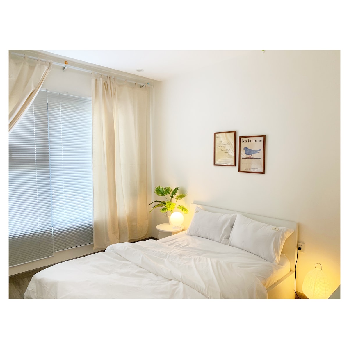 Beautifully designed Studio Apartment, convenient location, and direct elevator. Located right at the center of Thu Dau Mot city, 5' drive or 10' walk to the most commercial towers in town (Becamex Binh Duong), close to a number of dining, drinking and relaxing options, yet still quiet for a comfortable stay. ✯ Proper in-person check-in / checkout ✯ 24/7 online and offline support ✯ We have multiple units in house so feel free to ask if you need more occupancy