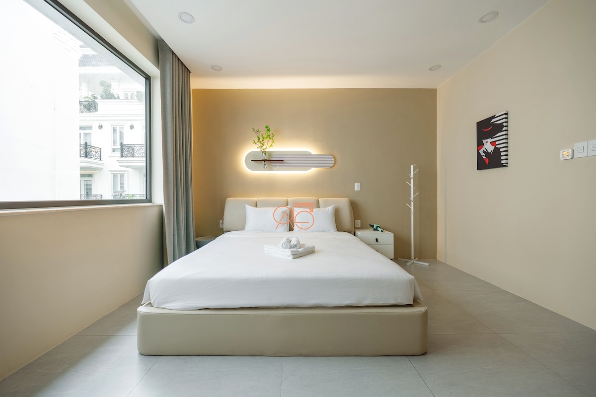 Discover a luxurious private retreat in the heart of the city. Just 3 minutes from Rach Chiec MRT, this 45m² smart home offers privacy, comfort, and style. Enjoy high-end amenities: app-controlled lighting, 85” & 55” 4K TVs with Netflix & Apple TV, immersive Apple HomePod sound, customizable mood lighting, and a 2-meter spa-style soaking tub. Perfect for couples, business travelers, and small families.
