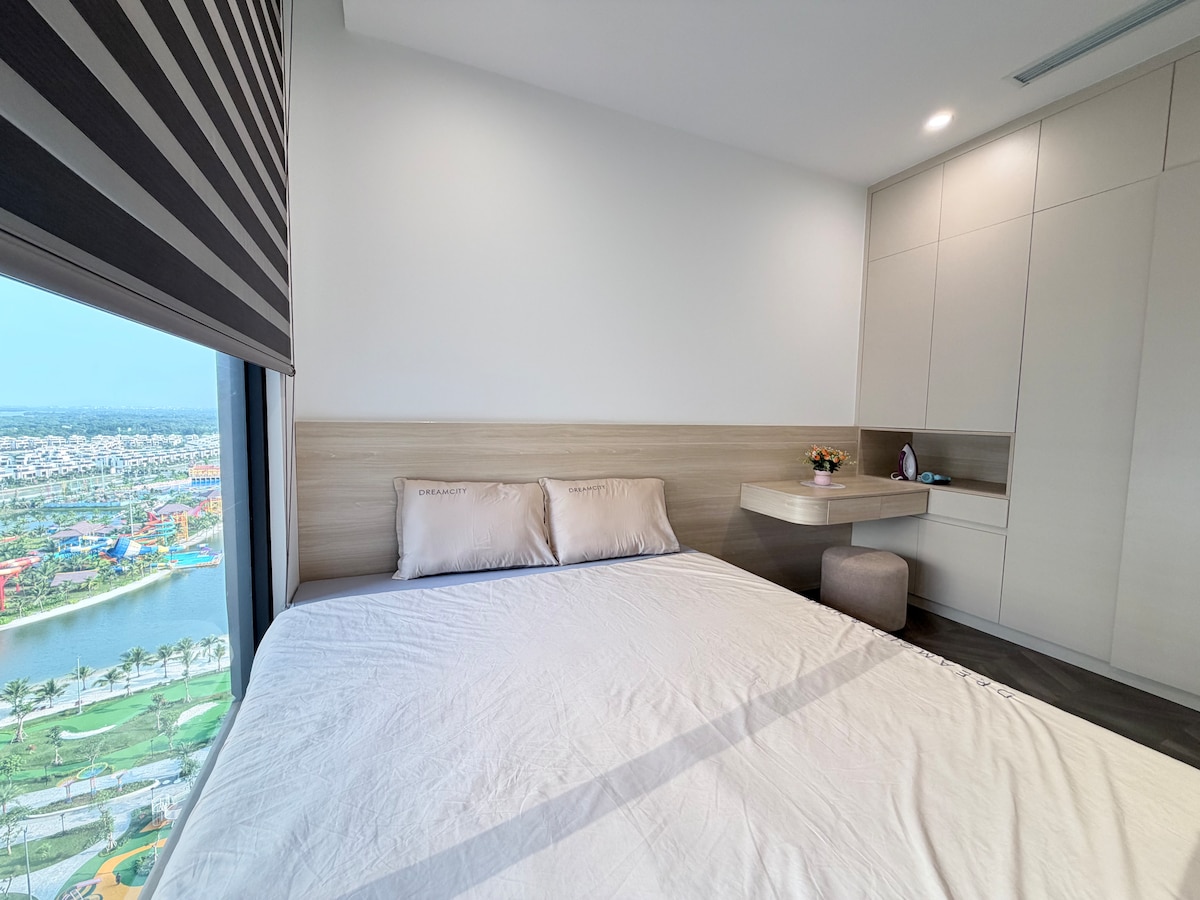 Cozy top-floor apartment in Vinhomes Grand Park with panoramic views, fresh air, and modern comforts. Enjoy 2 plush queen beds, full kitchen, and weekly cleaning. Steps from Vincom Mall’s cafés, dining, and shops, plus free bus to District 1 & 2. A perfect blend of comfort, convenience, and city adventure.