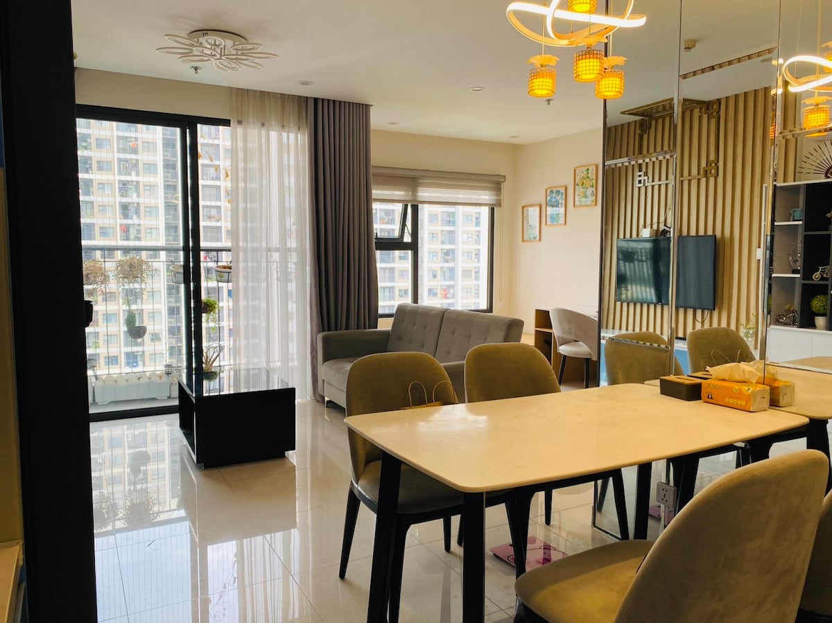 - Located at Master Centre Point, Vinhomes Grand Park, near Vincom Mega Mall and Winwonders Water Park and Theme park. - The apartment is clean and beautiful, with comfortable bedding sets. - Strong WiFi for both work and entertainment. - Full and Modern amenities: big refrigerator, induction stove, microwave, washing machine, smart 65-inch TV, kettle, rice-cooker, hair dryer, iron, umbrella, Lavie mineral water, seasonings... - Fitness/gym center and swimming pool are included for guests.
