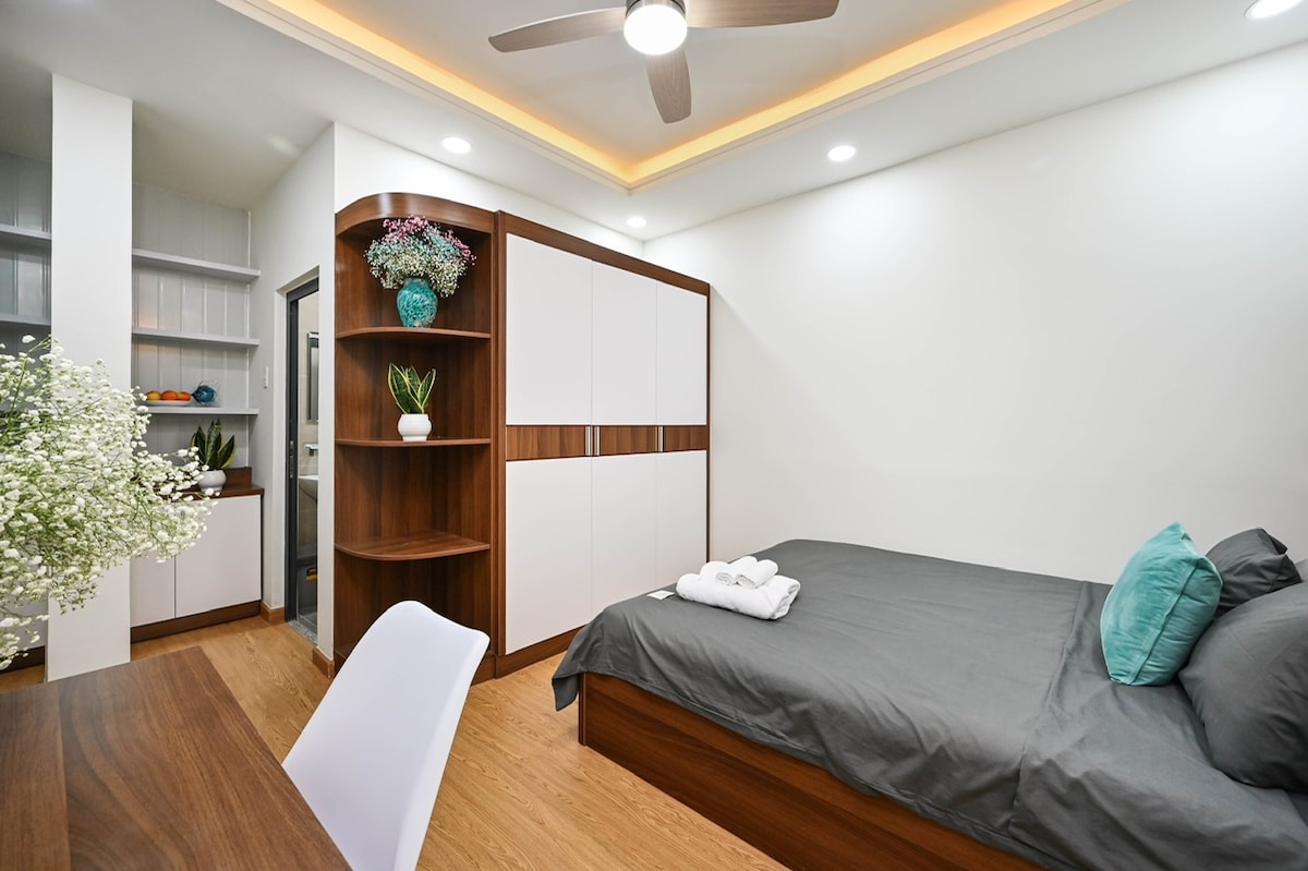 Ivy Room ~ Peaceful Stay in the Heart of Saigon ~ Surrounded by greenery and natural light from large windows, ideal for both short & long-term stays. - What you'll love: •Big window •Quiet, charming alley - relaxing vibe •12 minutes by car from TSN Airport/D1 •Spacious shared kitchen •Washing & drying machines •Motorbike rental •Self check-in •Surrounded by food! - Amenities include: •Elevator •Rooftop terrace •Projector for movie nights •Essentials: hair dryer, toiletries, towels, dental kit