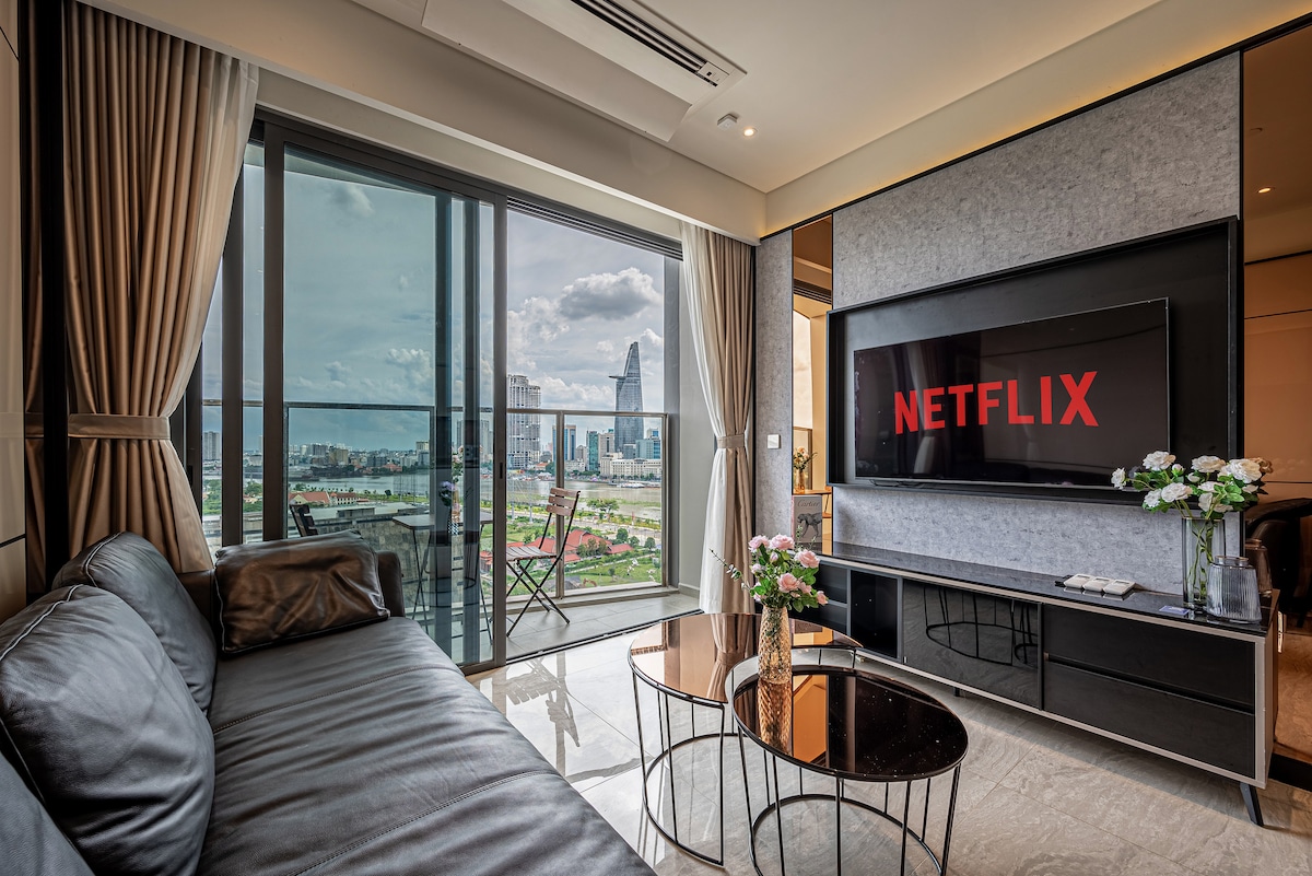 Luxury 5* The Opera Residence Corner Apartment by ChiHome - River View Bason District 1, The LandMark 81, The Galleria, The Mett Office, District 2 Sala Thiso Mall. - Tháp B, Scala, Level 1x căn số 10 - Diện tích: 70m2 (căn góc) - Bao gồm 2 phòng ngủ, 2WC, thoải mái ở từ 2-4 người. - Tivi thông minh 65inch với Netflix và YouTube - Sofa, ghế Armchair, bàn trà. - Bàn ăn 4 ghế - Đồ dùng nấu ăn đầy đủ - Internet không dây tốc độ cao có sẵn - Điều hòa nhiệt độ cho cả nhà - Ra vào tòa nhà 24/7