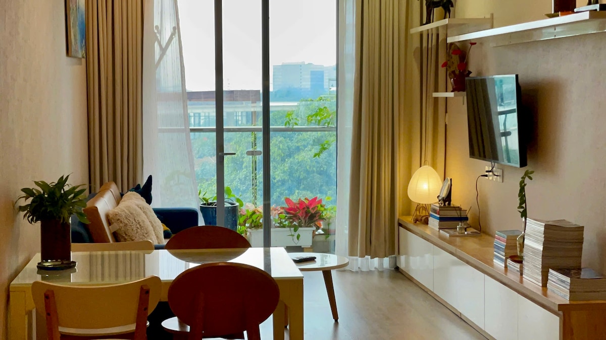 🌅 Wake up to soft morning light and lush garden views from your private balcony at Diamond Island, one of Saigon’s most peaceful and luxurious residences. With elegant décor, warm lighting, and a cozy chic ambiance, this home brings a perfect sense of calm — your quiet oasis amid the city’s vibrance. Whether you’re here for work or relaxation, every detail is thoughtfully prepared for your comfort: premium linens, a Netflix-ready Smart TV, and a fully equipped kitchen for your favorite meals.