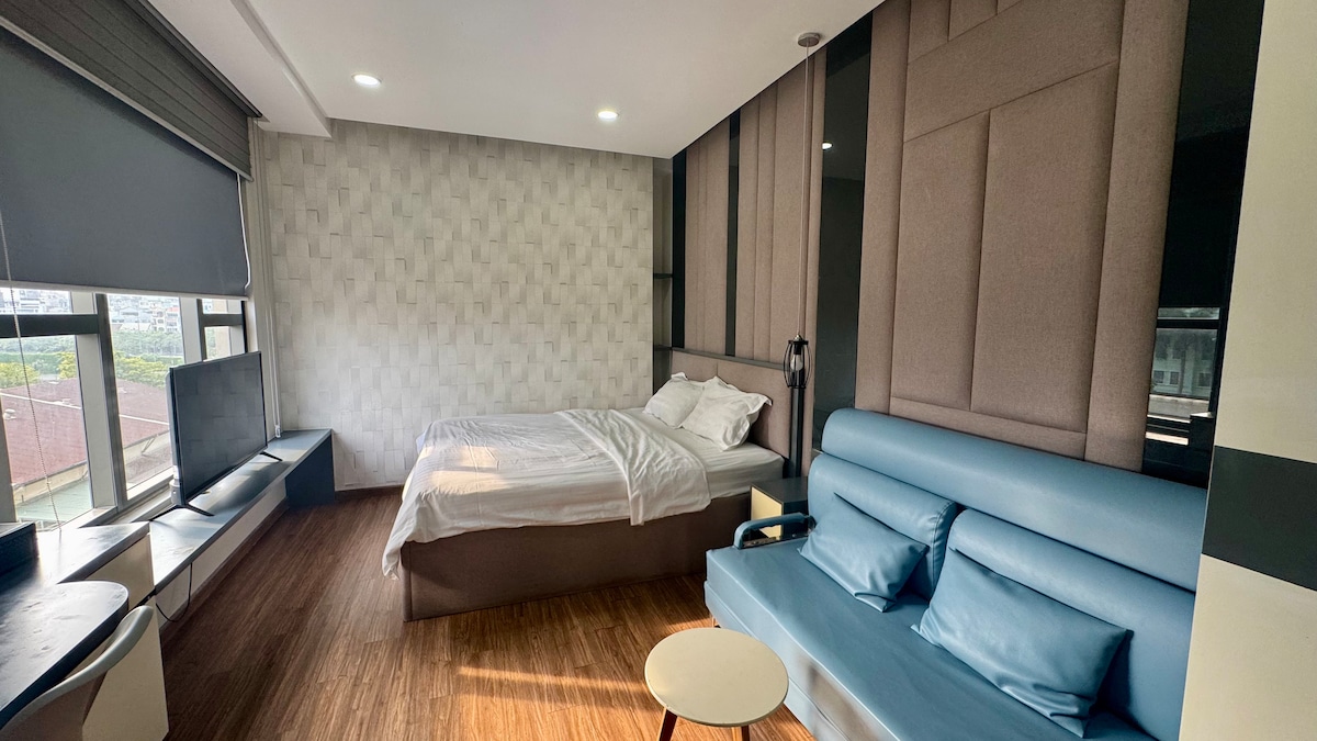 Welcome to Your Urban Oasis! Relax in our 1-bedroom apt for 2 with a wide-view balcony in Japan Town, just 5 minutes from HCM center. Restaurants, bars, cafes, massage spots, and convenience stores are all within a 1-200m walk. On 3rd floor, your Japandi paradise has full amenities. No elevator, but the wide and gentle stairs are a free workout! 💪 Enjoy a 100-inch projector for movie nights, a cozy 1.8m sofa, a fully-equipped kitchen, and a refreshing bathroom.