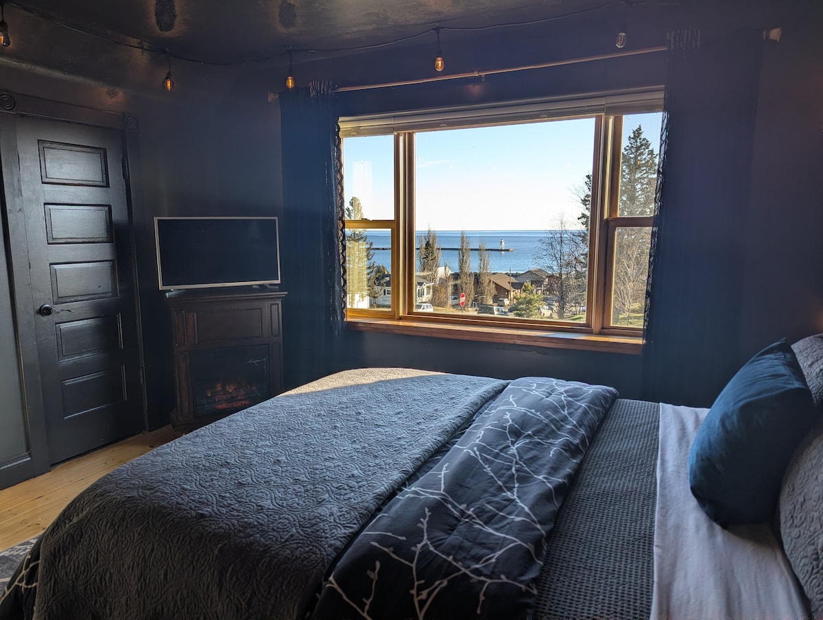 Cozy unique accommodations, just blocks from downtown Grand Marais. Wake up to a view of Lake Superior and the Harbor.