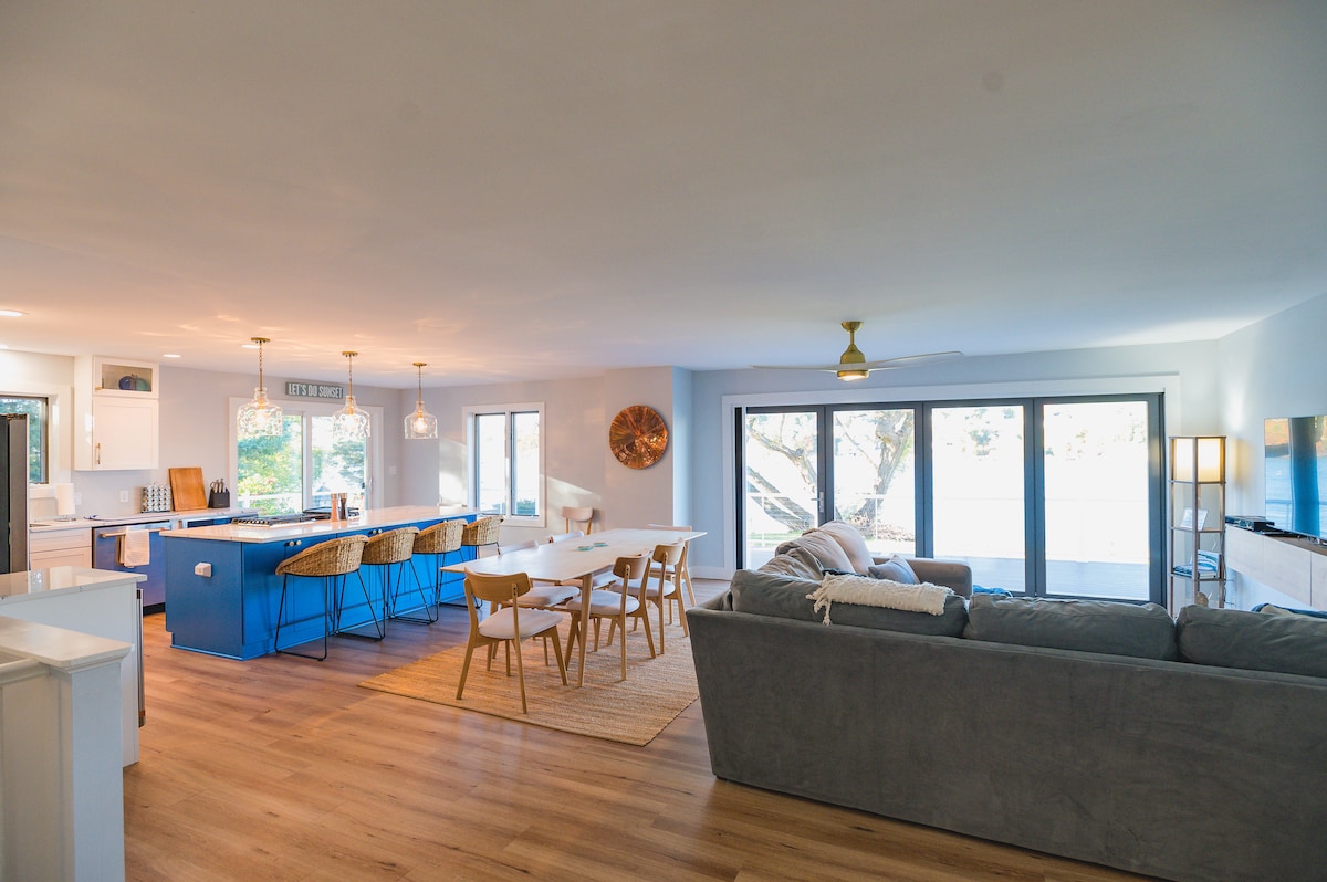 Pick all the experiences! Get cozy by the fireplace in the cabin themed living room. Read a book on the comfy red couch in the relaxing sitting room. Shake a cocktail while listening to Jimmy Buffet in the sunroom bar. Let the flames of a bonfire enhance your stories around the beautiful lake view fire pit. Grab a towel and kayaks then walk across the road to the beach! If you’re looking for an adventure or a tranquil getaway, this 2 bedroom house by the beach is your home away from home!