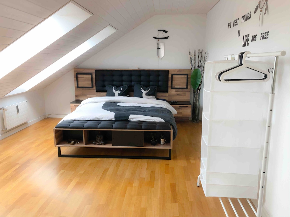 Factory Loft 180 qm, sleeps 4 people 1 Four post bed, 1 Double Bed, Cheminee fire and wood stove, WHEELCHAIR ACCESSIBLE, own spring water We also have a second loft for 6 people it’s under Loft 200sq meters in the forest Dogs are welcome, there is an end cleaning fee of Chf. 10.- per dog for the entire stay, which can be paid directly here to the host