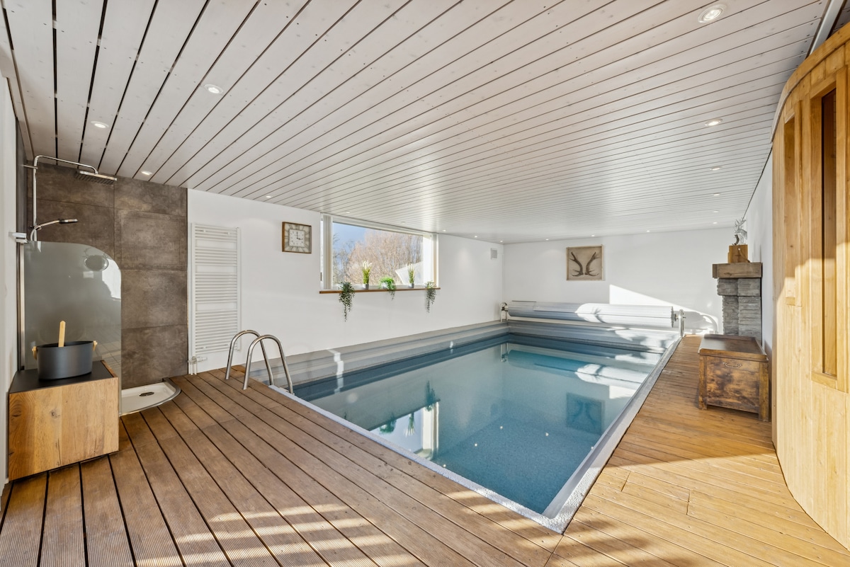 Private wellness oasis near Lake Constance – exclusively for you. Heated indoor pool for private use, available year-round (8 am–8 pm), sauna optionally bookable (CHF 10 per person/day). Modern 3.5-room apartment (90 m²) with hotel-quality beds, fully equipped kitchen, balcony with BBQ, Wi-Fi and parking. Ideal for couples and relaxation seekers, also family- and pet-friendly. Bathrobes and sauna & bath towels included.
