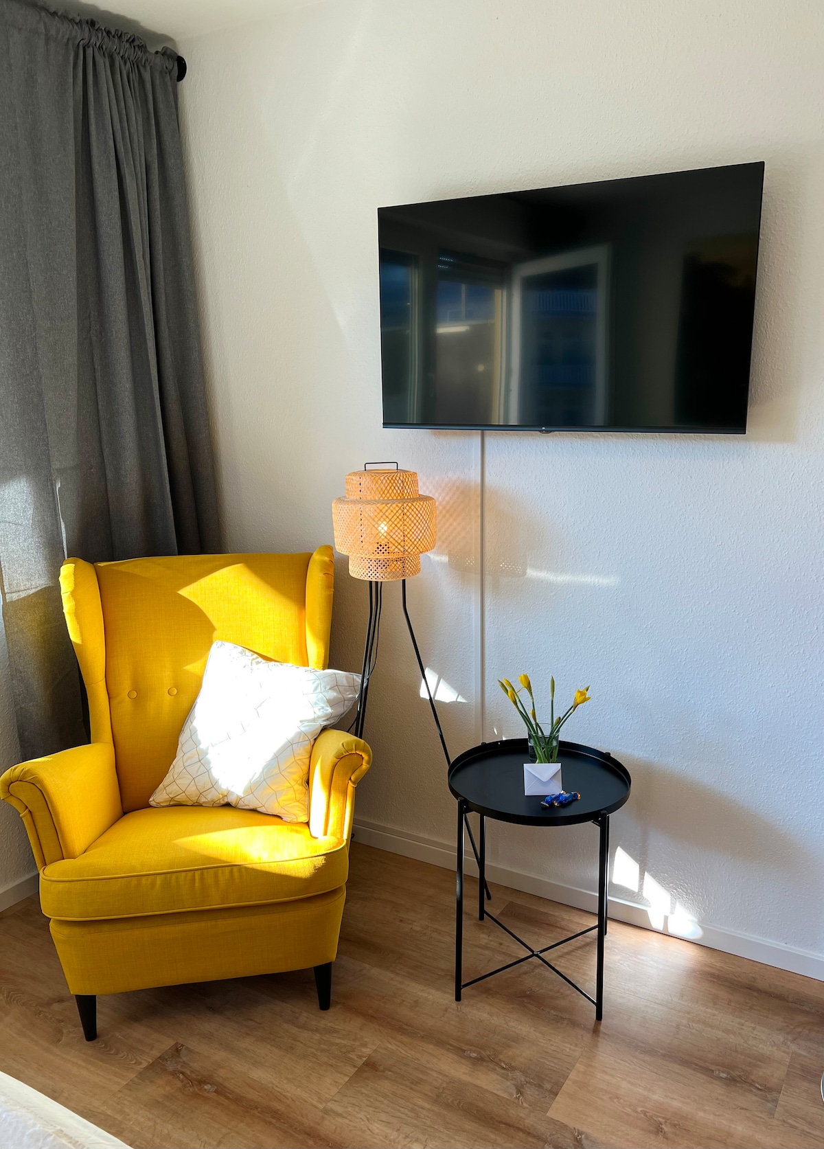 Die Wohnung befindet sich im Erdgeschos und bietet Platz für 2 Personen. Das Bad ist ausgestattet mit großer bidentiefer Dusche, Infrarotkabine, Fußbodenheizung. Die Küche ist vollwertig ausgestattet Kaffemaschine, Toaster, Wasserkocher. In dieser integriert ist auch der Waschtrockner. Die hohen Decken und großen Fenster ergeben ein tolles Raumgefühl, welches durch moderne LED Lampen unterstrichen wird. Dimmen Sie die Räume oder stellen Sie ihre Lichttemperatur nach Wunsch ein.