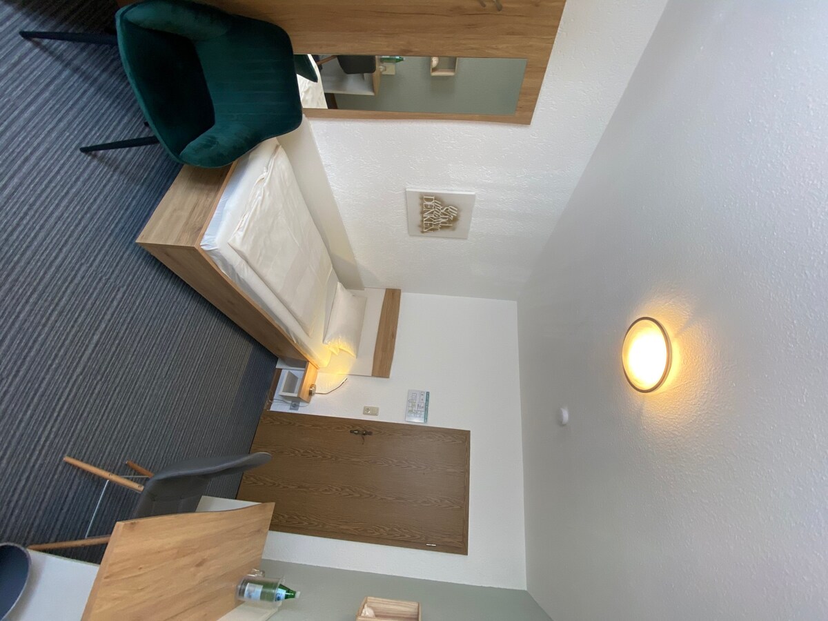Spanning 22–24 sqm, the M Apartment offers extra space and comfort with a king-size bed, shower, desk. Every room includes a kitchenette, desk, and seating area with armchair and table. Enjoy amenities like a flatscreen TV, air conditioning, soundproof windows, Nespresso machine, Teufel speaker, and free Wi-Fi. Please note that 5% per person per night city tourist tax is not included in the Airbnb price and must be paid directly to the hotel.