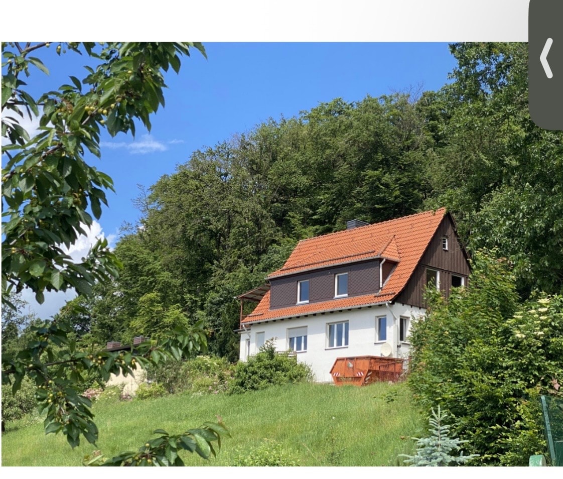 Alleinliegende verschieferte Mühle mit Gesindehaus und Scheune an einem kleinen Bächlein neben riesiger Lichtung unweit Kronach. In den letzten drei Jahren sorgfältig renoviert, ausschließlich mit alten Möbeln eingerichtet, böhmischer Kreuzgewölbestall zu 80 qm großer Wohnküche umgebaut. Brotbackofen, Kastenfenster, Zentralheizung. Schmetterlinge ohne Ende, Glühwürmchen, der Schwarzstorch ... Zusammen mit dem direkt daneben liegendem, neu renovierten Gesindehaus haben über 22 Personen Platz.