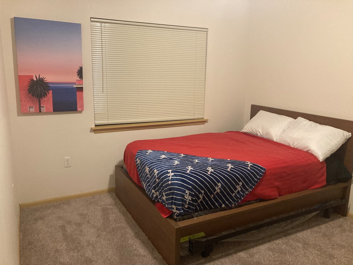 At our house you can relax and enjoy this climate controlled 1 bedroom duplex with covered parking and the amenities your used to at home. Sit on our comfortable chaise couch and watch your amazon prime shows or cast your favorite streaming service on a 50 inch fire smart tv. Sleep in a king bed with a comfortable 12 inch mattress and 2 types of pillows. Wake up and have pancakes and syrup with coffee or tea. Enjoy a walk to Harry Todd park with Lake access only 2 minutes away.