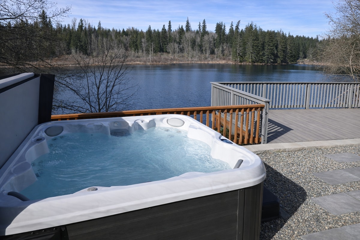 Enjoy Summit Lake Waterfront with private dock and a hot tub. 3 bedrooms, 2.5 bath modern home is just the place to enjoy a short or long stay. Chef's kitchen with gas cooktop, double oven, and well stocked kitchen. Guests have access to paddleboards, kayaks, cornhole and croquet. Flat yard to enjoy games and lounging. Firepit area next to the water. Deck that overlooks the water with the most beautiful sunset views all year round. Laundry on site