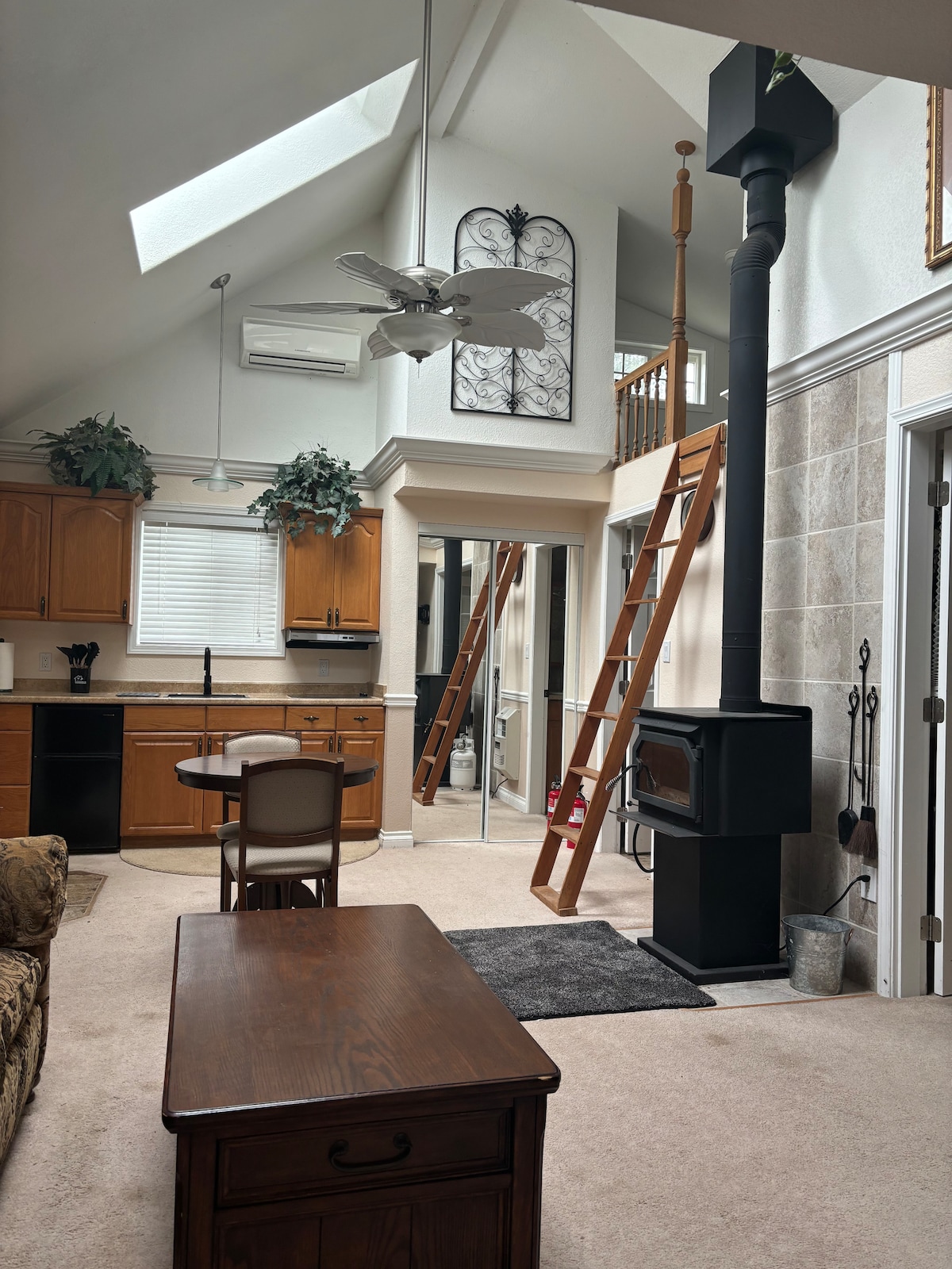 Step into a world of unparalleled style and uniqueness at our brand NEW guest house completed in spring of 2023. This modern guesthouse includes the best amenities to make your stay easy, cozy, and comfortable: - Cleaned and disinfected every single time - Easy access to I-5, less than 1 mile away! - Close to grocery stores, restaurants, entertainment, and the Mall - 55” 4k Roku Smart TV - Fast WiFi - Mini split unit providing A/C and heat - Wood burning fireplace - Level 2 EV Charger