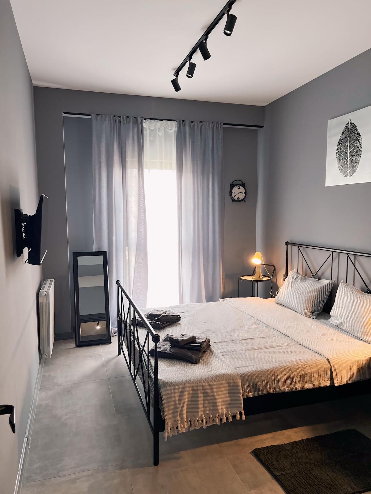 Newly renovated modern and comfortable apartment located in 'Nadzaladevi' district (Tornike Eristavi Street), near the 'Didube metro station and Kikvidze' park ('Veterans Square '). equipped with all necessary amenities: central heating, free WIFI and TV, kitchen, fridge, microwave, stove, shower, toilet, hygiene items, hair dryer, towels, bedding. A separate bedroom with a double-sized bed to ensure good rest and sleep. wardrobe and scales. Hope you will have a good time in Tbilisi
