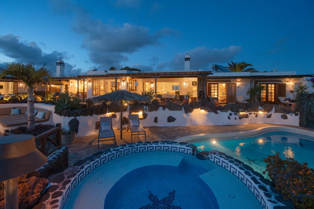 (jacuzzi GRATIS) CONSEJO: ENTRA EN LA WEB PRIVADA DE LA VILLA y MIRA SUS EXTRAS OPCIONALES SI DESEAS TUS VACACIONES ELEVARLAS A UN NIVEL SUPERIOR!. ES FACIL! TIENE EL MISMO NOMBRE QUE EN BNB! Villa independiente diseñada y hecha con sus manos por el artista local de vidrio fundido " SALVADOR GARCIA" Pensada en cada detalle para hacer soñar a la PAREJA ! Salvador ha creado obras únicas y exclusivas que sin duda alguna ha reflejando el carácter de lanzarote con paz , armonía e ilusión!