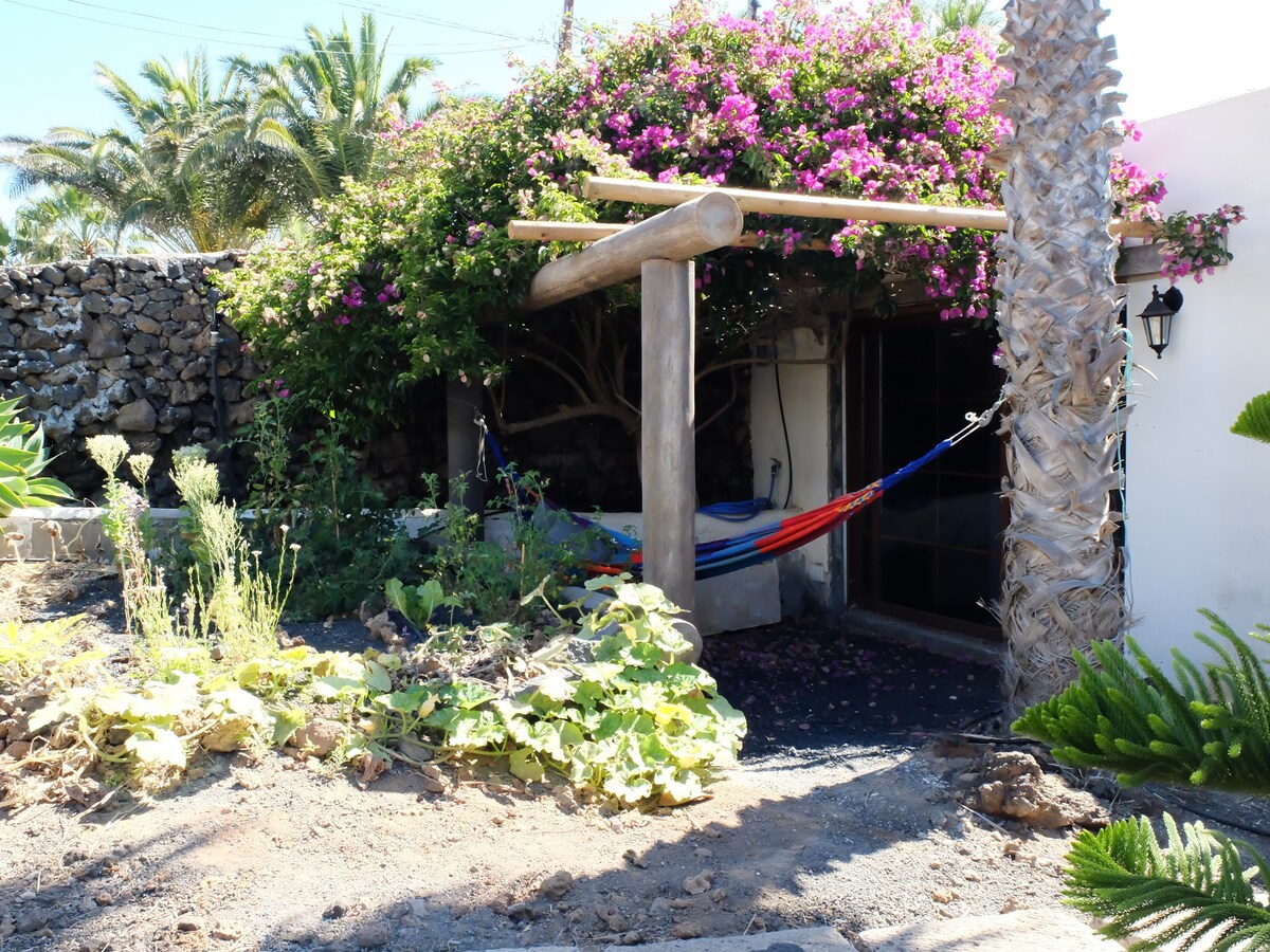 ▪ Descuento semanal 5% ▪ Descuento mensual 10% Ideal para teletrabajo (tranquilidad y silencio) y muy buena conexión wifi. Casa El Jardín de Tias es una casita contigua a nuestra casa, con entrada independiente. Tiene dos ambientes y un baño, además hay una terraza techada donde poder comer con vista al jardín, y otra zona hamaca y relax a la sombra de una bouganville.