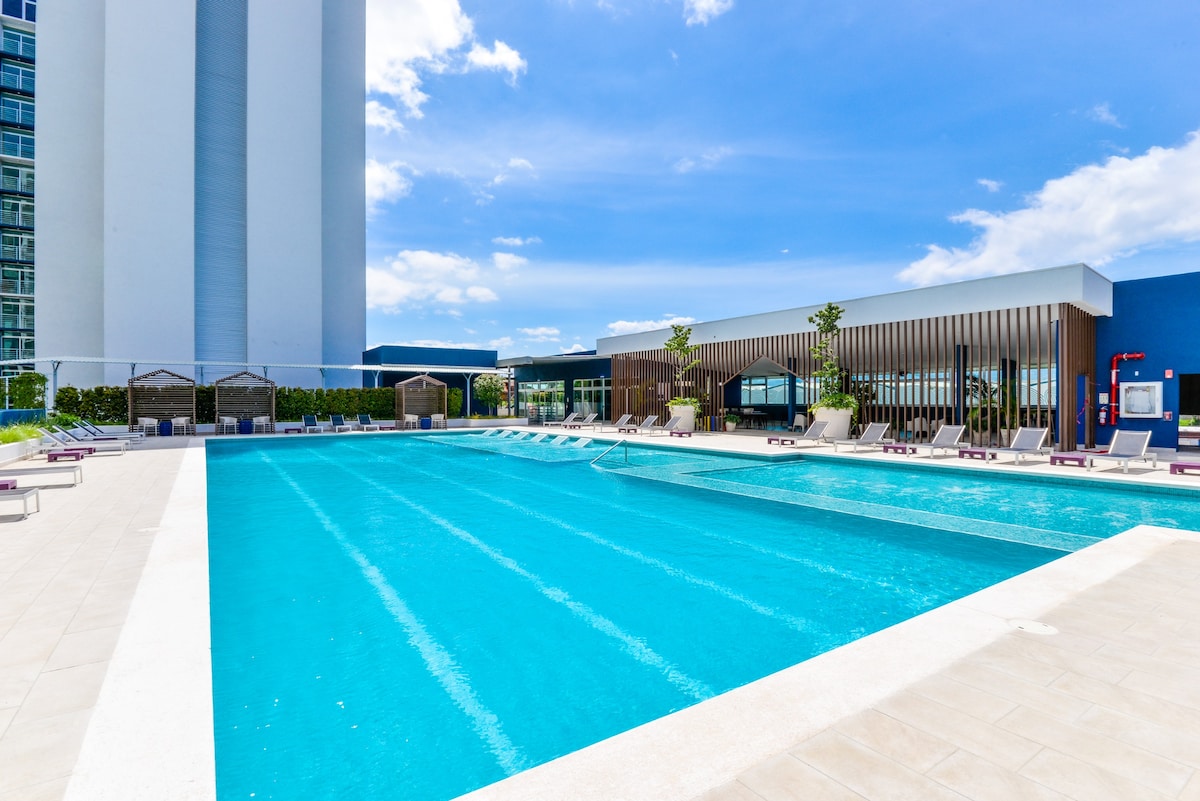 位于市中心的1卧室现代公寓(景观+泳池)