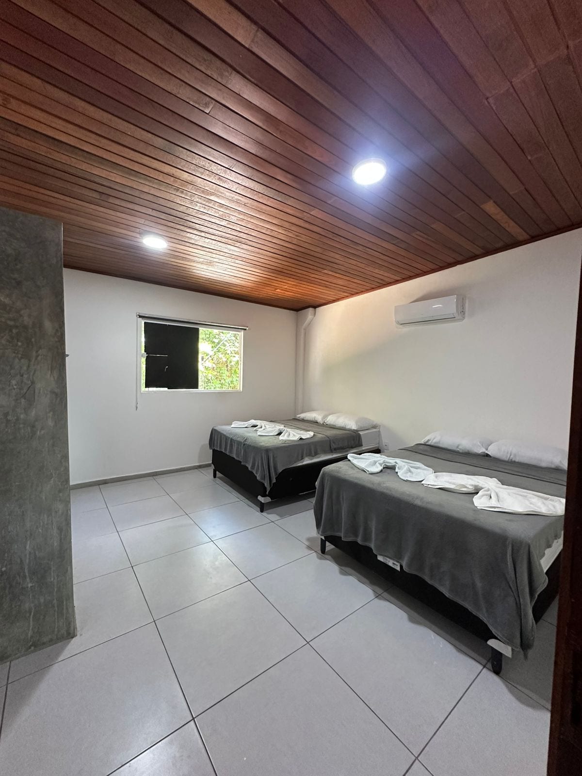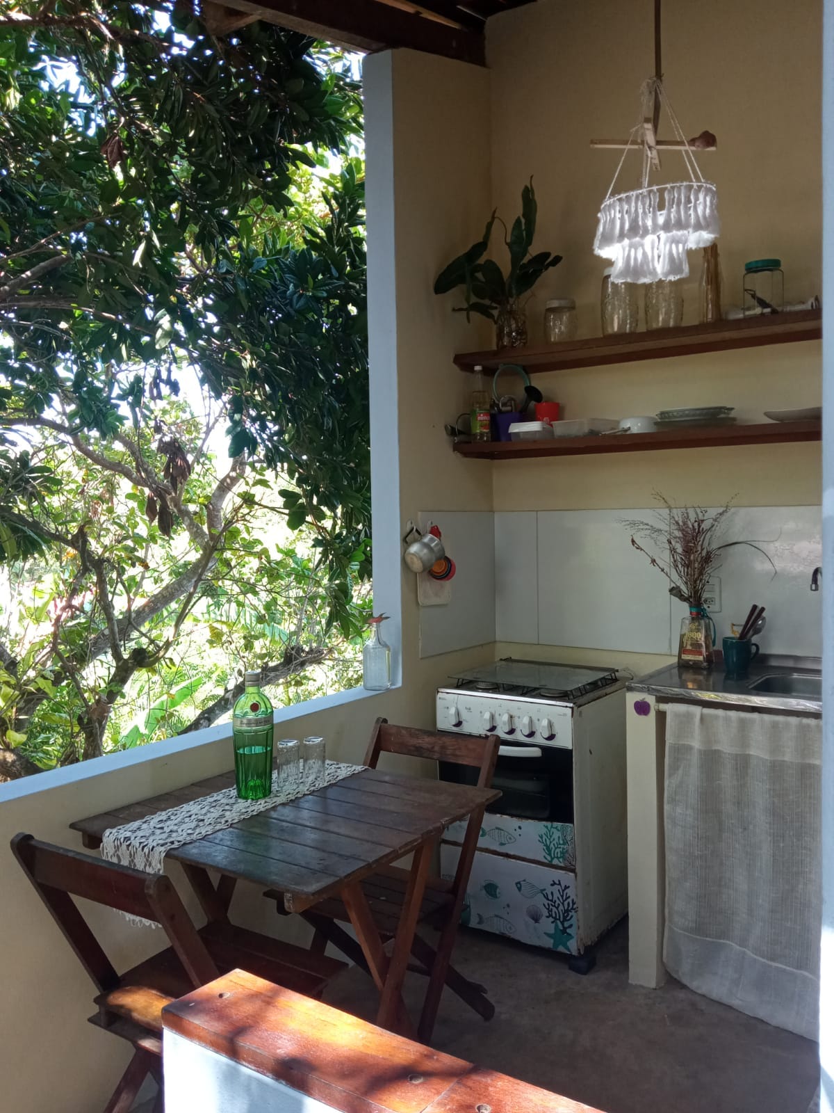 São lindas casinhas independentes, com amplo jardim em meio às arvores, agora com esse espaço totalmente novo. Conta com 1 cama de casal, (roupas de cama e toalhas de banho trocadas a cada semana), Ar Condicionado e ventilador de teto, TV , WiFi, mesa para trabalhar, cozinha americana equipada com utensílios básicos, fogão e geladeira, banheiro com chuveiro elétrico, rede, área de serviço, chuveiro externo e estacionamento externo para carro. Estou disposto a qualquer ajuda ou informação.