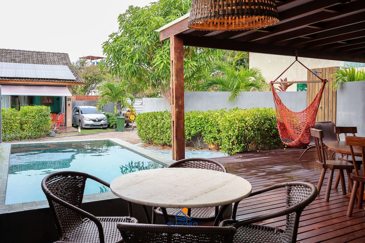 Looking for the perfect beach getaway? With the security of a gated community and the comfort of an apart-hotel, CASA GIRASSÓIS is exactly what you need! Recently renovated, this spacious and bright home is ideal for families or groups of friends. Enjoy a fully equipped kitchen, large beds with top-quality mattresses, powerful showers, wide verandas, and lush green surroundings. The condo features a restaurant, on-site parking, gardens, and swimming pools. Your beach holiday starts here!