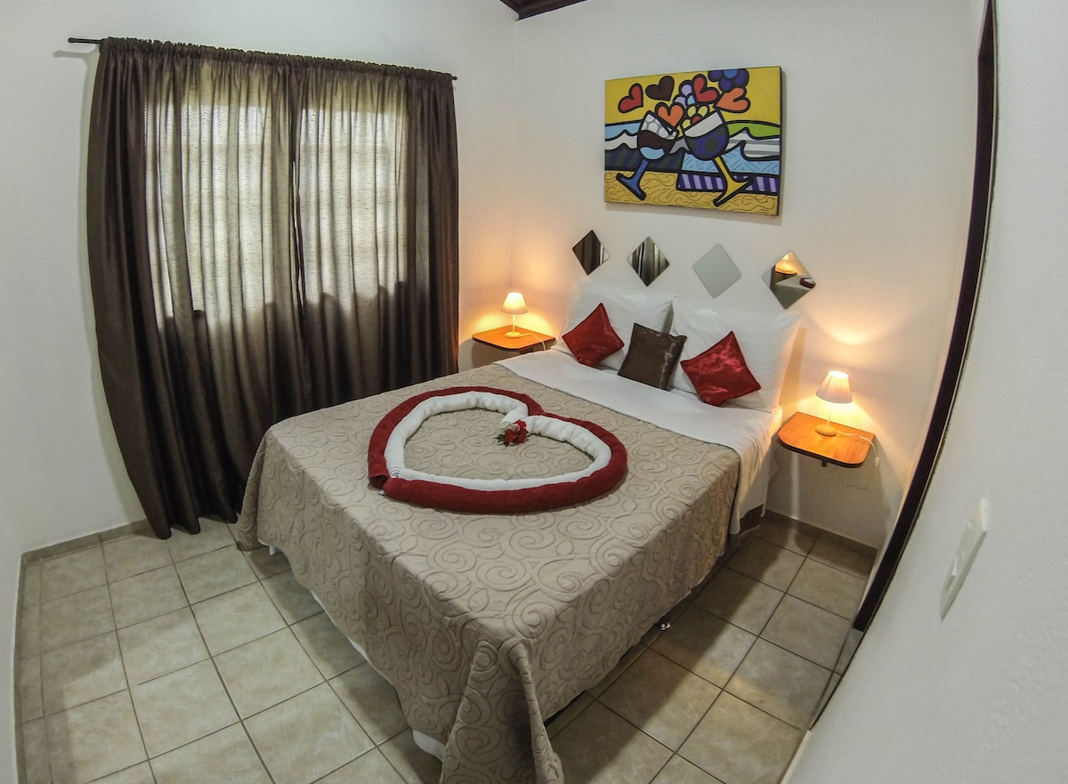 O nosso apartamento familial acomoda 4 pessoas (adultos ou crianças). Esta acomodação dispõe de 2 quartos separados, uma área de estar com rede. O quarto possui frigobar, cofre, Smart TV 40'', ar-condicionado nos quartos e na sala, ventiladores de teto e um banheiro confortável com chuveiro elétrico.