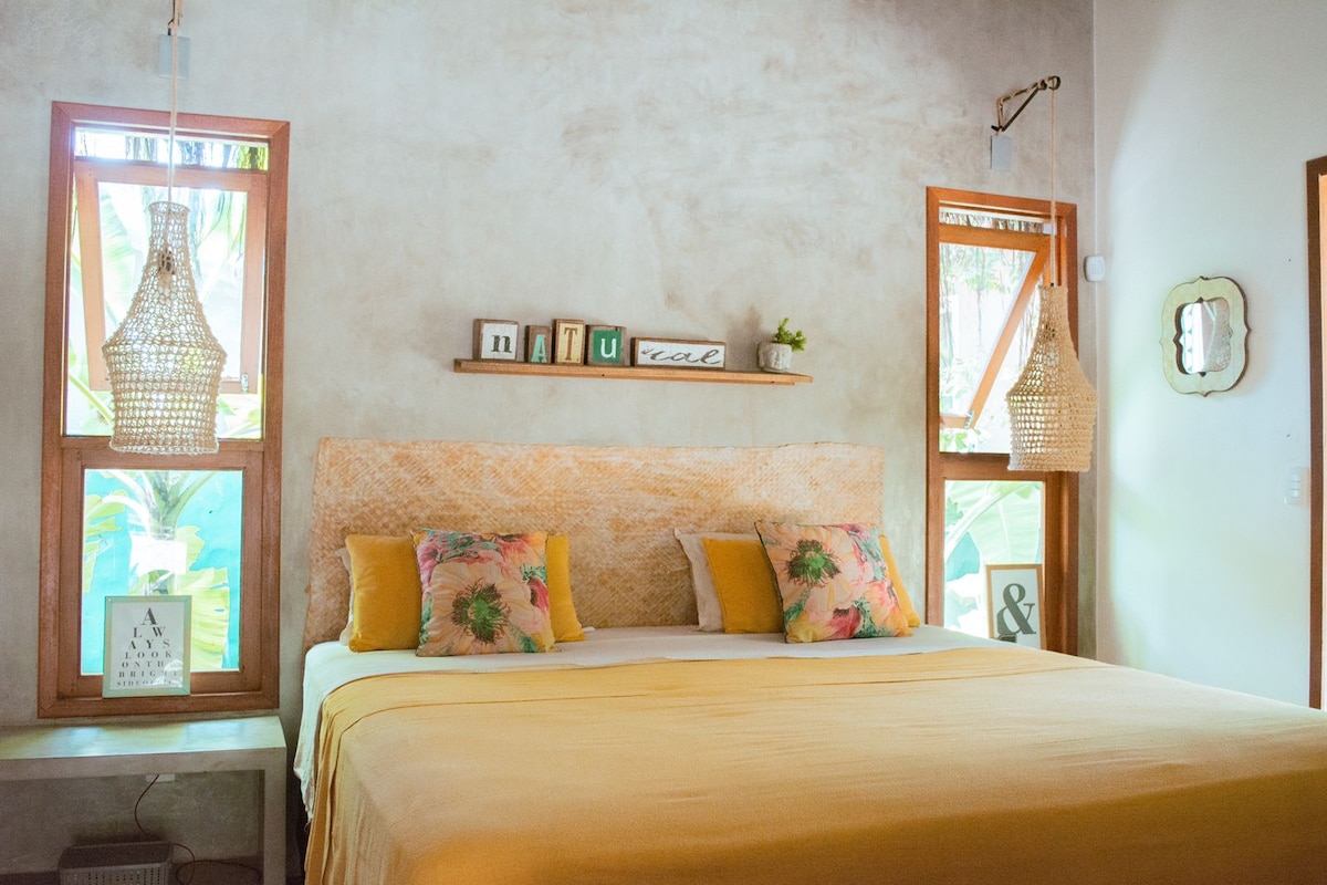 Between the countryside and the beach, Vila das Conchas Pipa, located in an easily accessible location, with plenty of tranquility and safety, is the perfect place to enjoy the natural beauty of Tibau do Sul, Praia da Pipa and Sibaúma. Close to the beaches of Madeiro, Baía dos Golfinhos and other attractions, Chalé Sibaúma, designed with modern and sustainable architecture, equipped and decorated with style, will provide you with a cozy stay.
