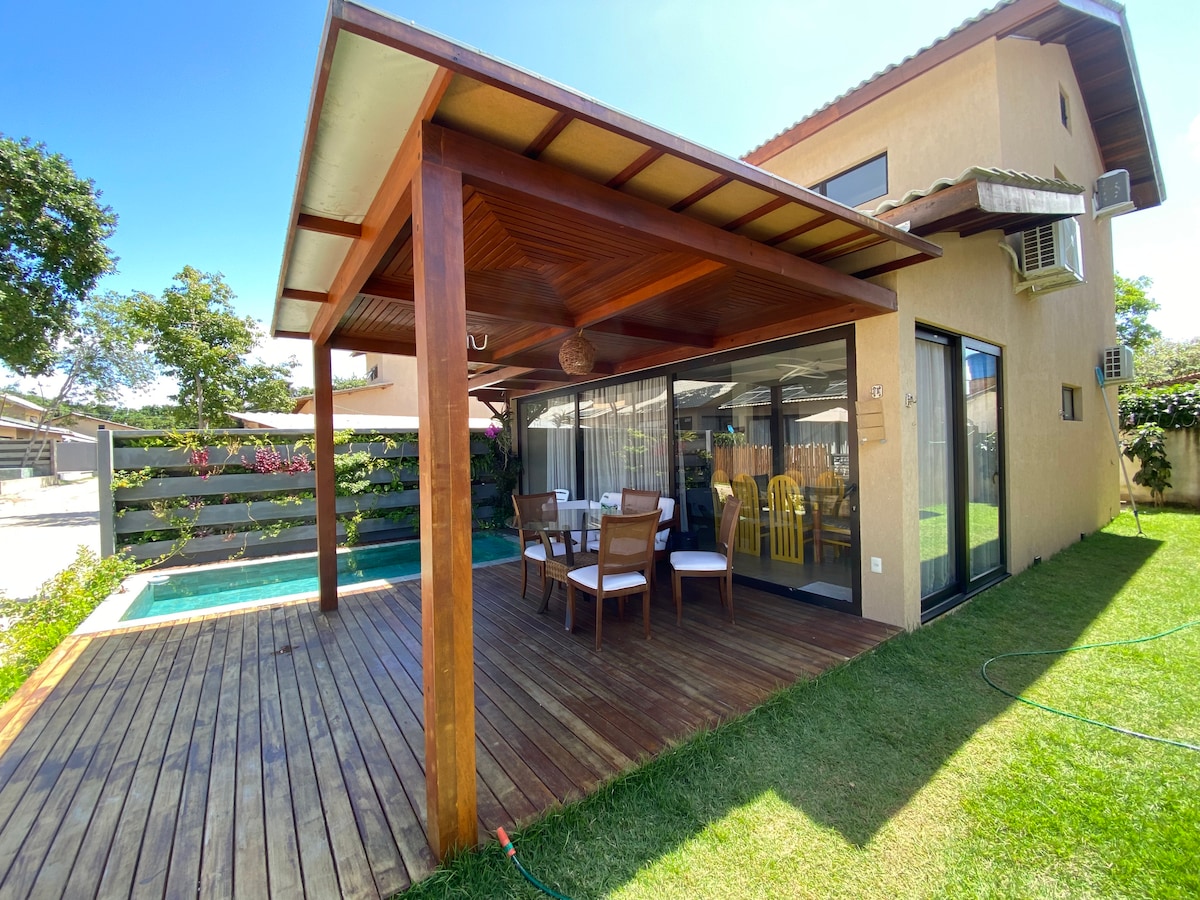 A Vila Amarela é um mini condomínio com 5 casas. Todas as casas acomodam até 4 pessoas. São 2 quartos: 1 cama casal e outro com 2 de solteiro. A cozinha é completa com geladeira, fogão, liquidificador, sanduicheira e todos os utensílios para vocês possam preparar as suas refeições. A área de lazer com piscina e churrasqueira é compartilhada com todas as casas. Você está alugando uma casa equipada, diferente de uma pousada ou hotel em que você só aluga um quarto. Sinta-se em casa na Pipa!