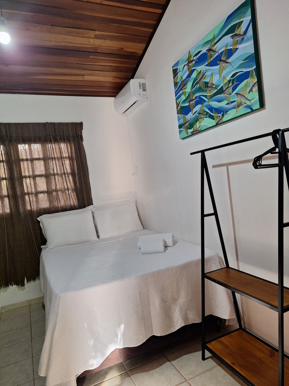 Suíte simples e aconchegante, ideal para quem busca praticidade e uma experiência vibrante no coração de Pipa. A hospedaria cultural está situada no burburinho da vila, a apenas 50 m da Av. Baía dos Golfinhos, perto dos principais restaurantes, comércios e da Praça do Pescador. Residência do casal de fotógrafos Michelle e Gustavo, que trabalham com audiovisual. Planeta Pipa.