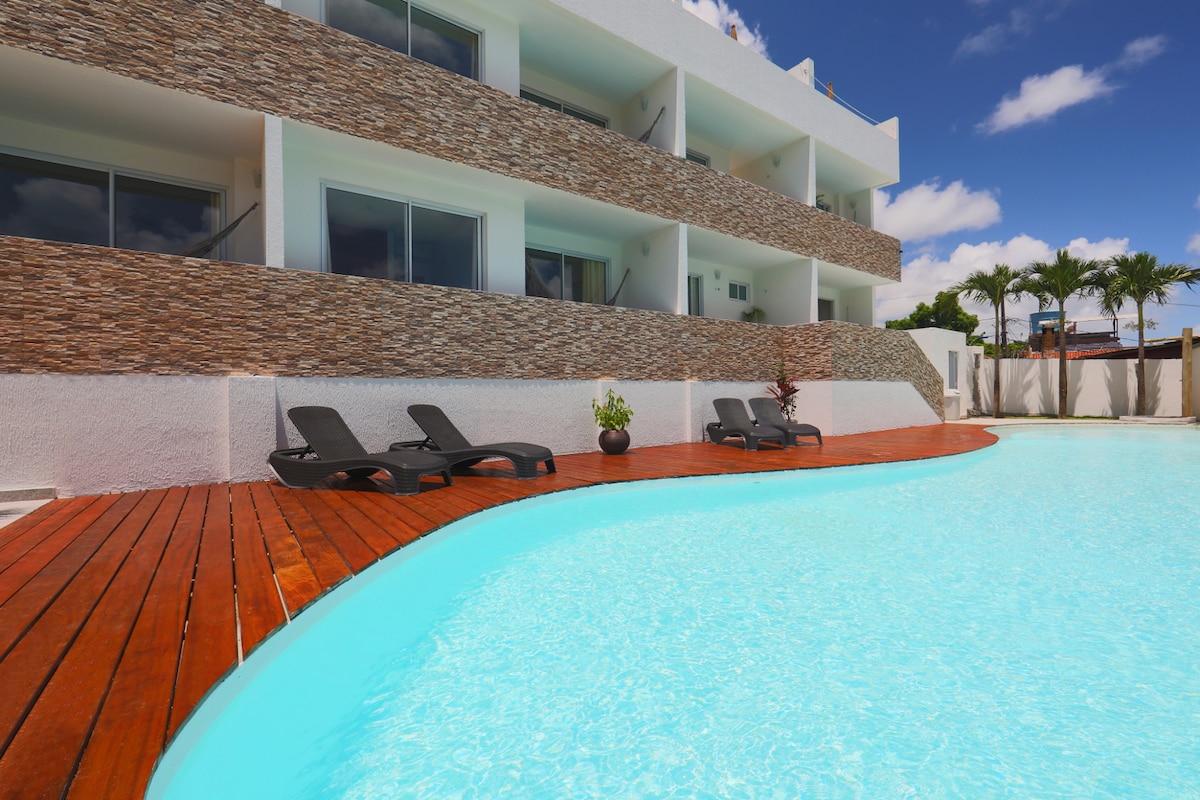 BRAND NEW, LUXURY CONDOS with the PERFECT LOCATION in DOWNTOWN PIPA. Located just a 2 minute walk from the main street which has many restaurants, bars and shops. Plus its only a 4 minute walk to some of Brazil's best beaches. All the main attractions of Pipa, just steps from your door but still quiet enough to relax. Pool, sea view terraces, jacuzzi on roof, furnished kitchen, AC, 40" tv & WIFI. Sleeps 4 adults. Day tours and housekeeping available for an extra fee.
