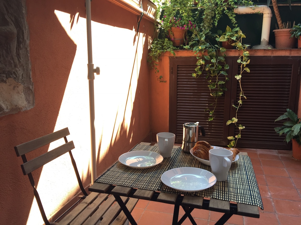 Cosy, one- bedroom detached house, overlooking a sunny, peaceful internal courtyard. The Secret Courtyard is located in one of the picturesque cobblestoned side streets in the hearth of Trastevere. Its particular design, high ceilings, handmade furniture, little touches, make it a unique space for delight, rest and comfort.
