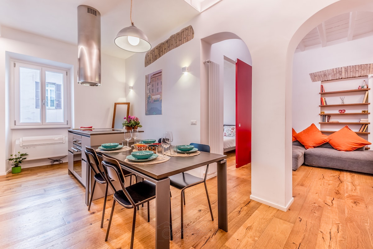 This delightful boutique apartment, located in an authentic 17th-century building, is the perfect retreat for couples and travelers seeking an intimate, authentic, and deeply Roman experience. The private panoramic terrace on the same level allows you to admire the city from above and feel connected to its truest soul, right in the heart of the historic center. A place designed to share emotions, relaxation, and small everyday rituals, while feeling completely at home.